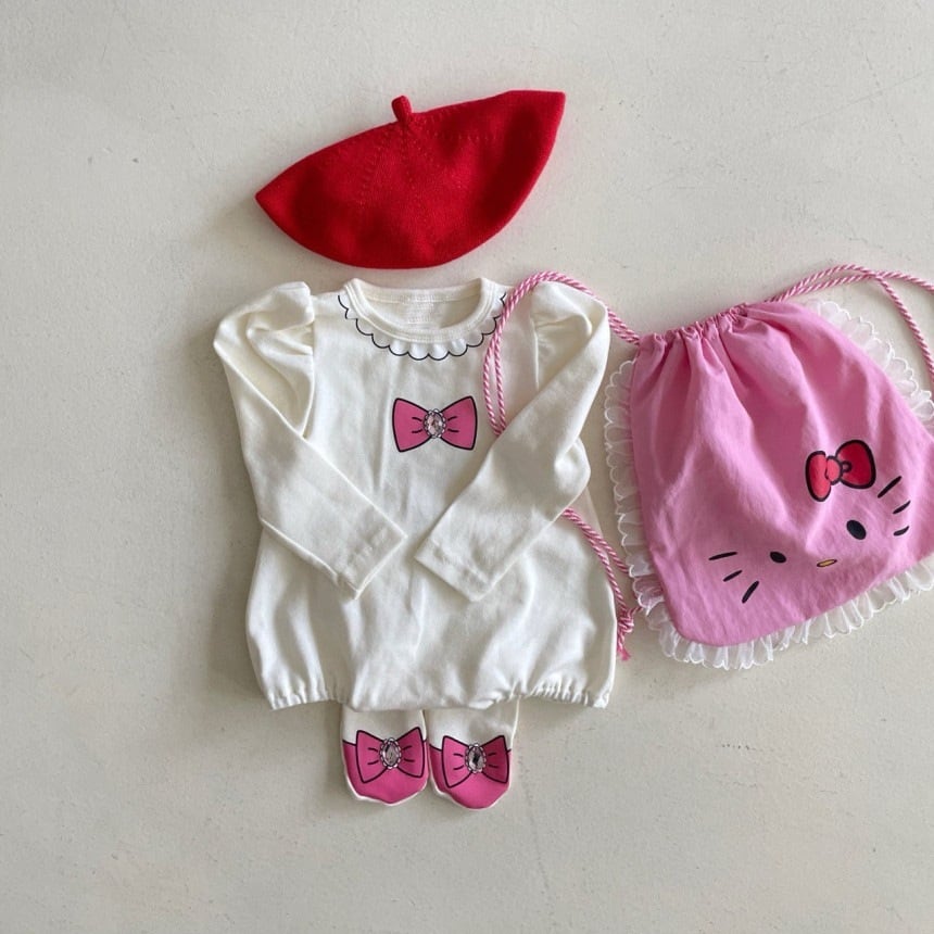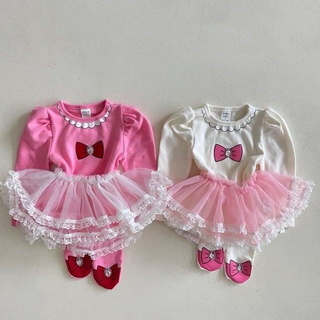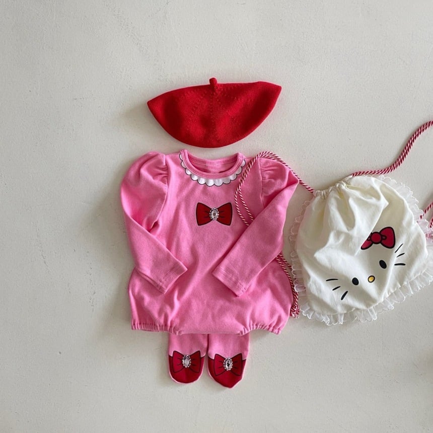 ベビー 秋新作 リボン付き 長袖Tシャツ&ソックス セットアップ