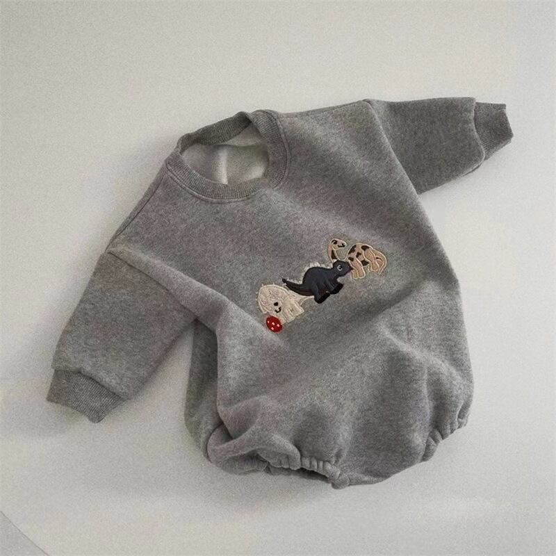 ベビー 秋新作 恐竜刺繍 ロンパース