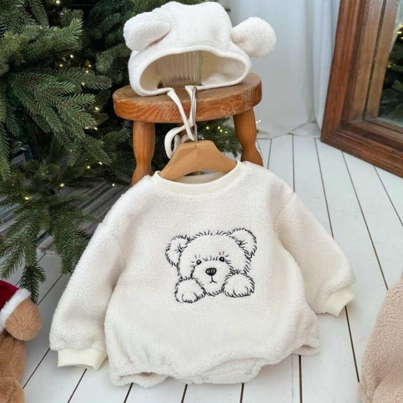 ベビー 冬新作 モコモコ クマ刺繡 ロンパース