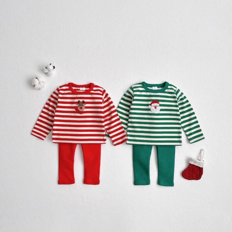 【クリスマス】ベビー ボーダー柄 クリスマス モチーフ セットアップ