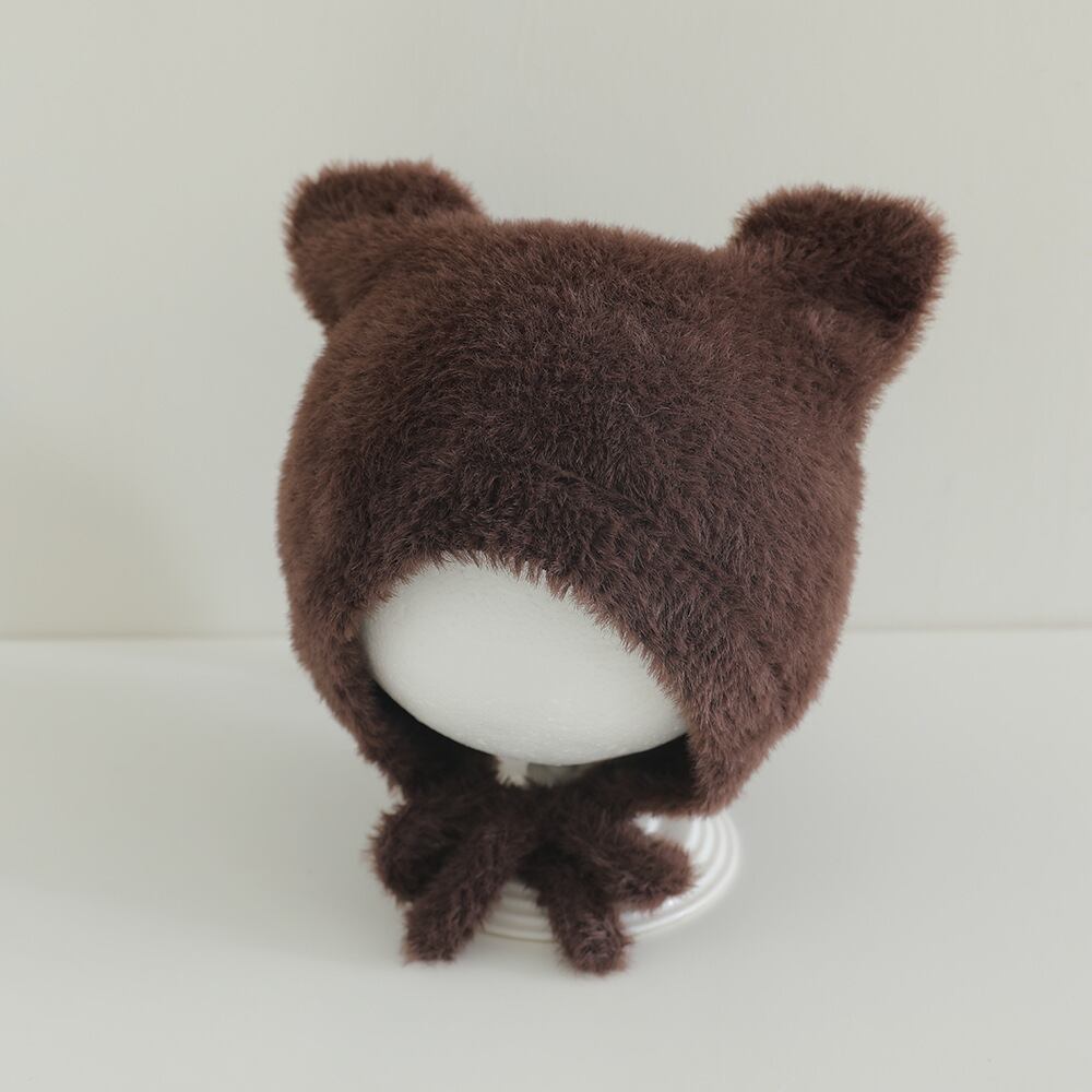 ベビー 冬新作 韓国風 ふわふわ 猫しっぽ ボンネット