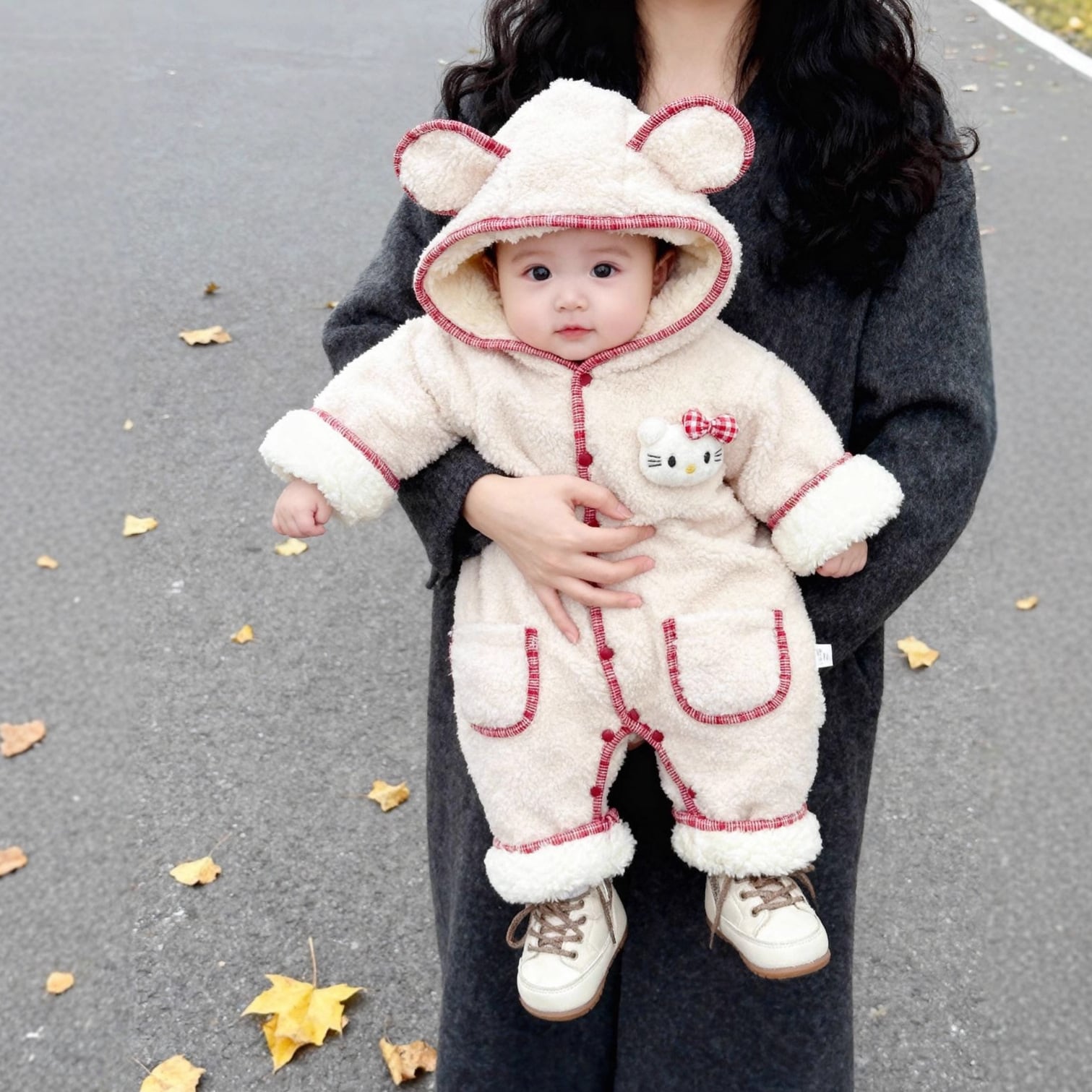 ベビー 冬新作 フード 付き 防風 防寒 お出かけ アウターロンパース