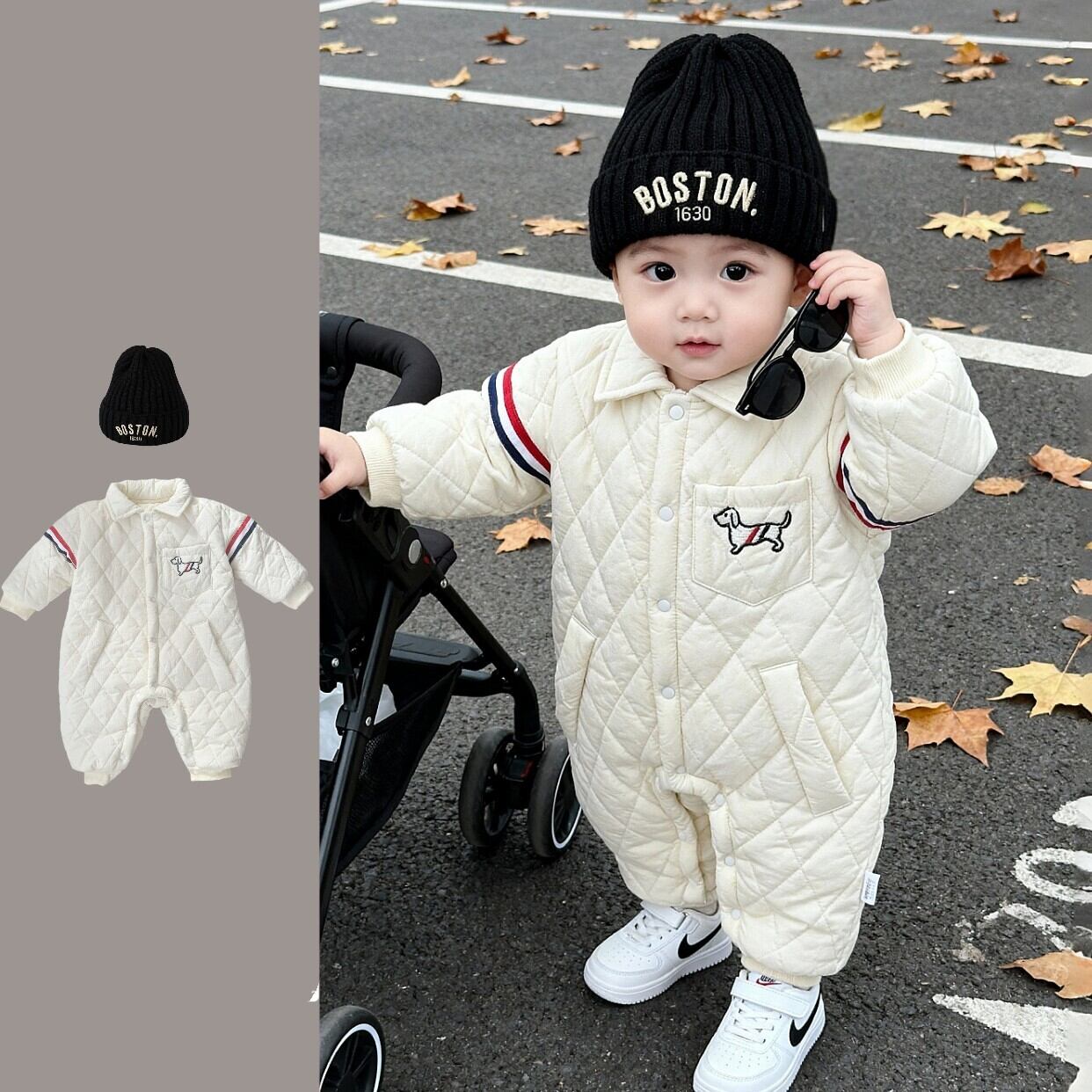 ベビー 冬新作 フード 付き 裏起毛 防寒 お出かけ アウターロンパース