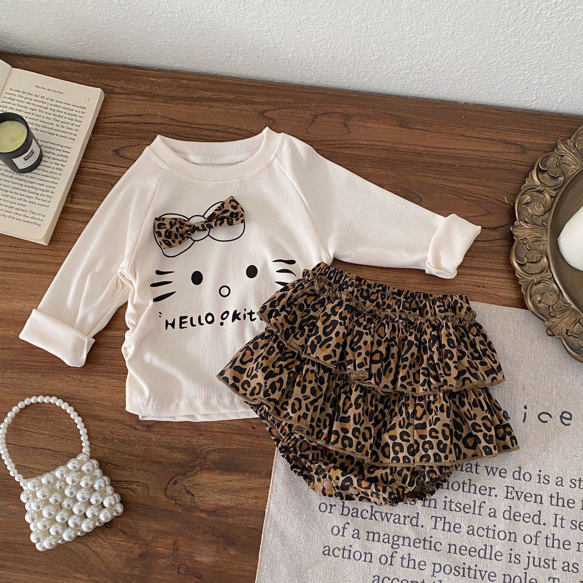 ベビー春新作 可愛い Tシャツ&ヒョウ柄スカート セットアップ