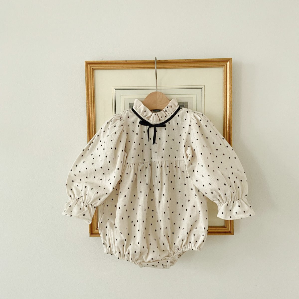 ベビー 春新作 ドット リボン ロンパース