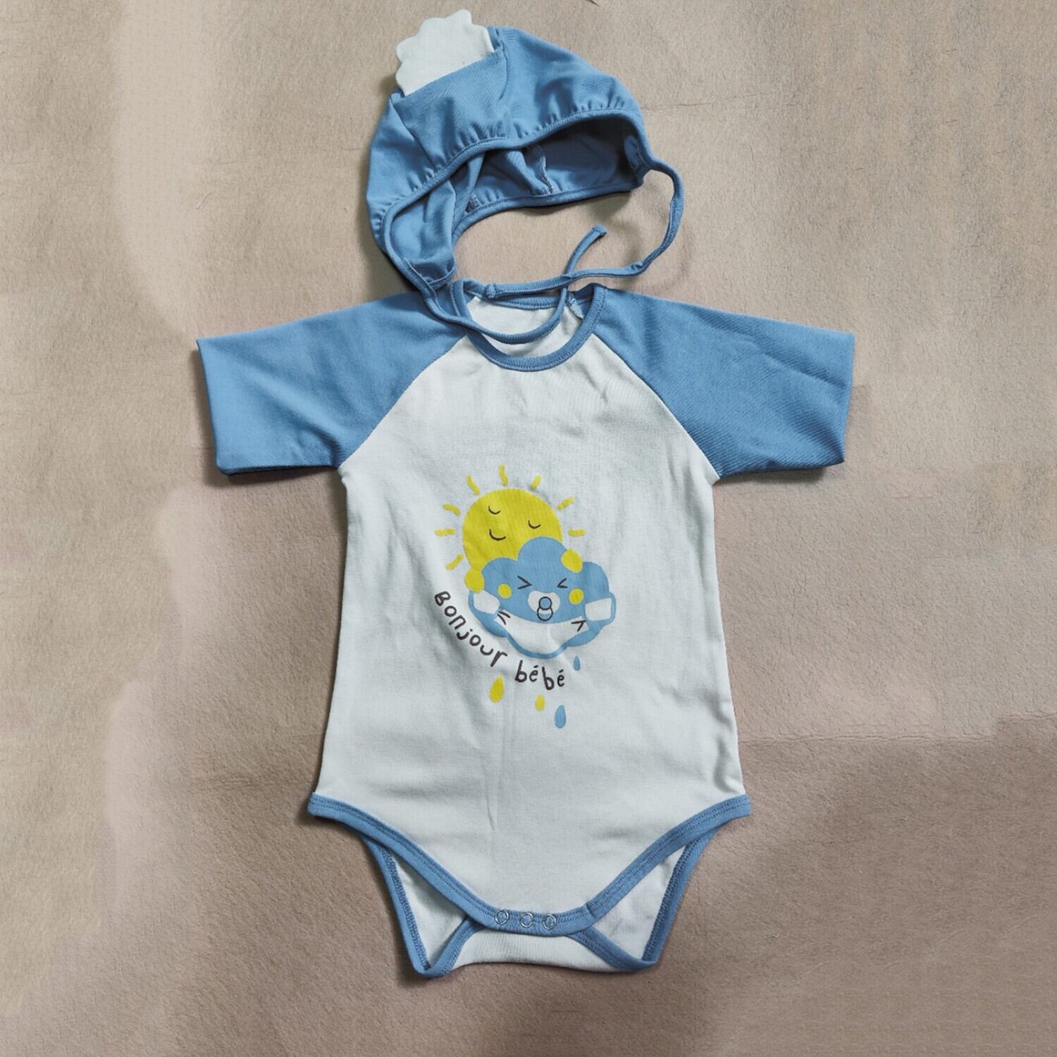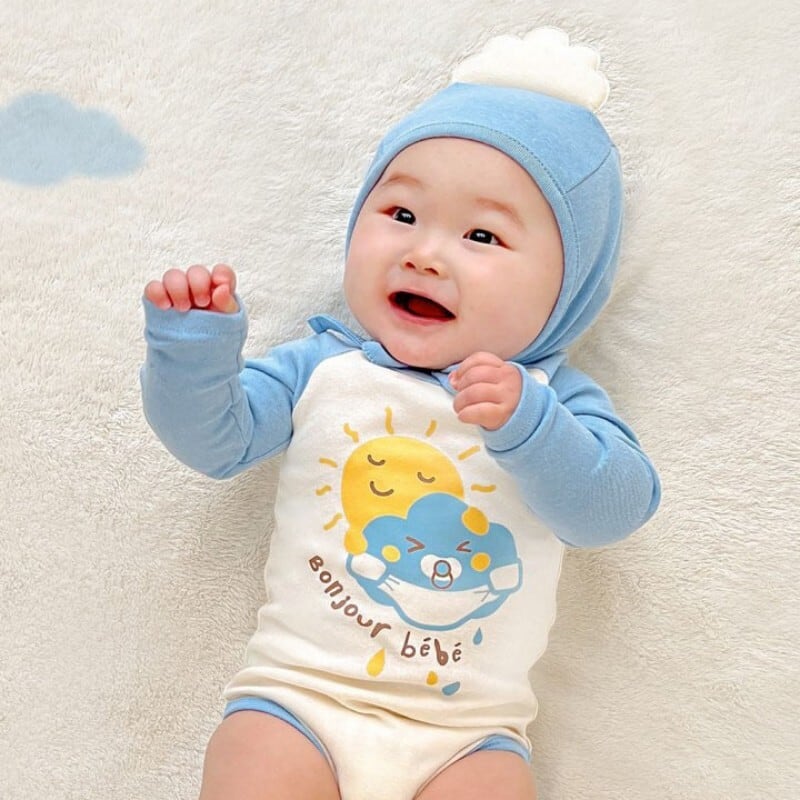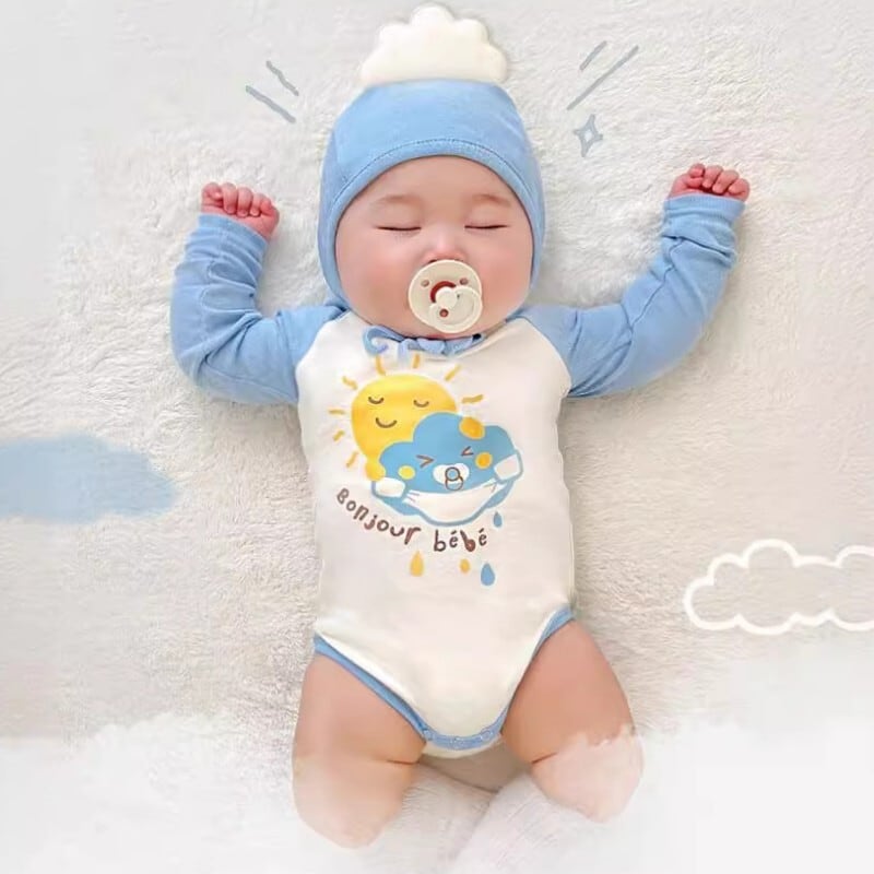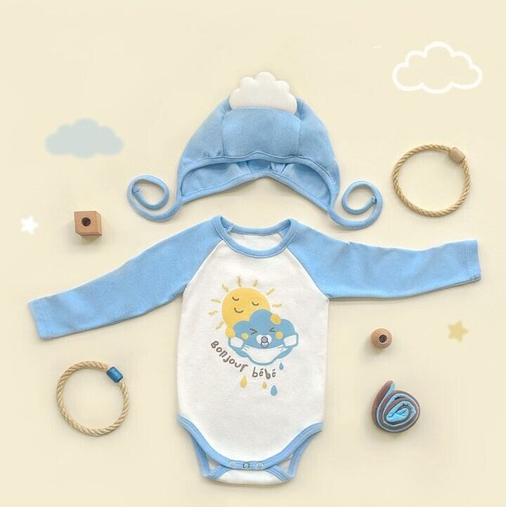 ベビー 春新作 韓国風 雲 プリント ロンパース &ボンネット