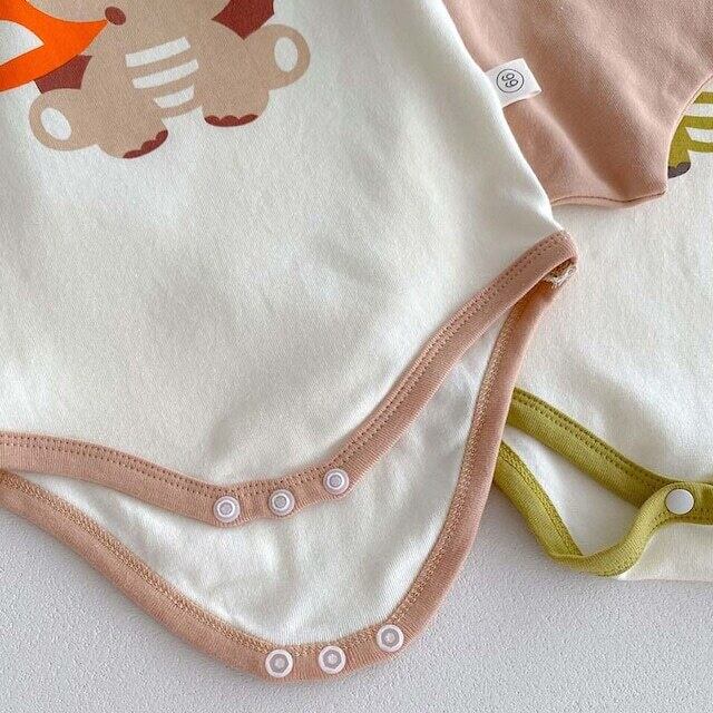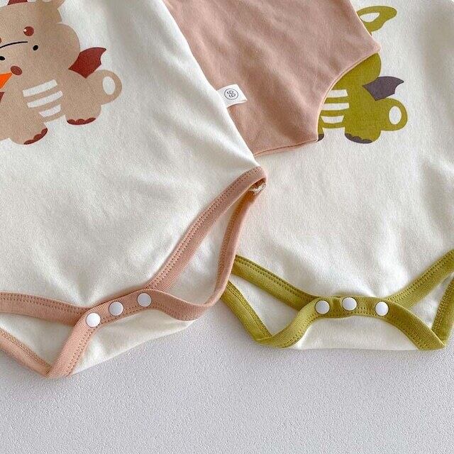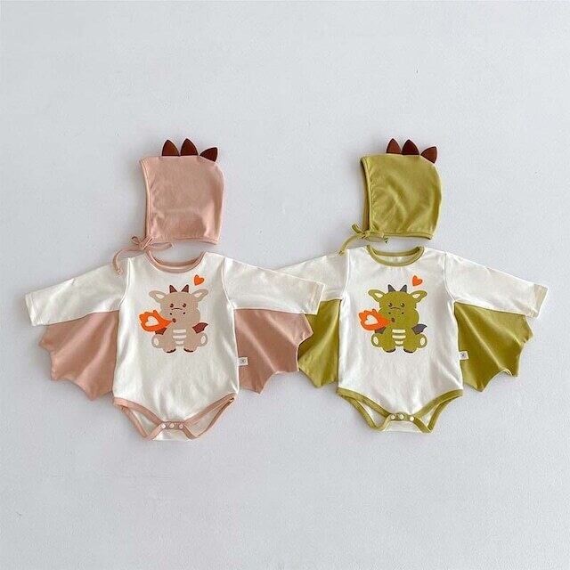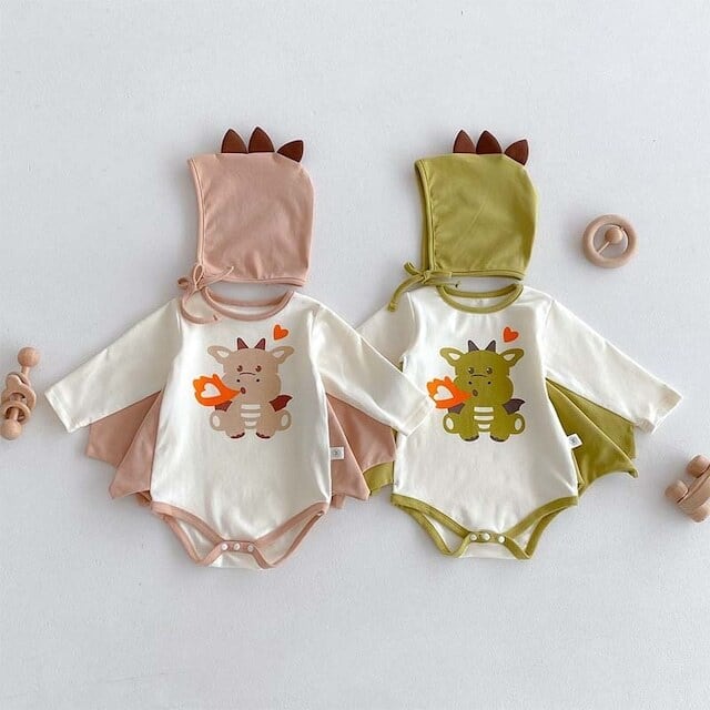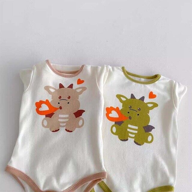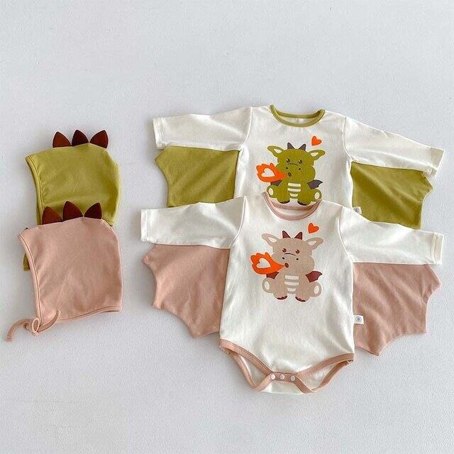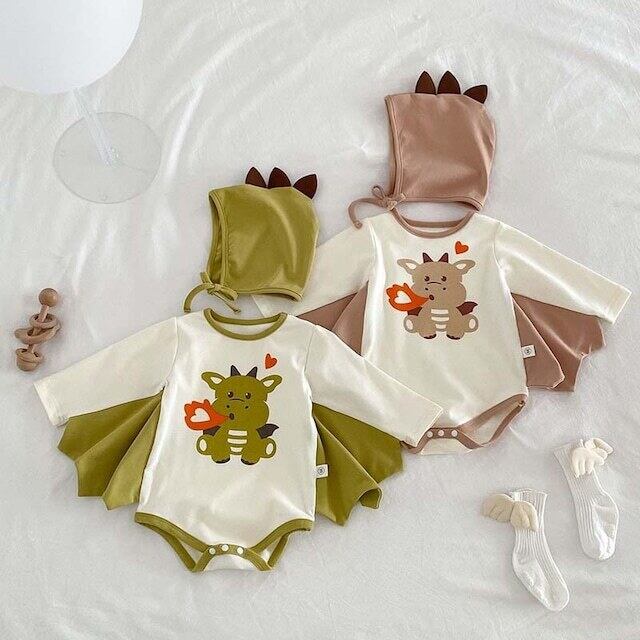 ベビー 夏新作 フード付き 恐竜 プリント ロンパース
