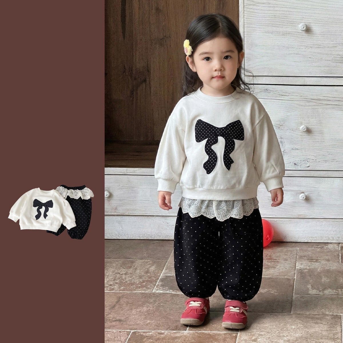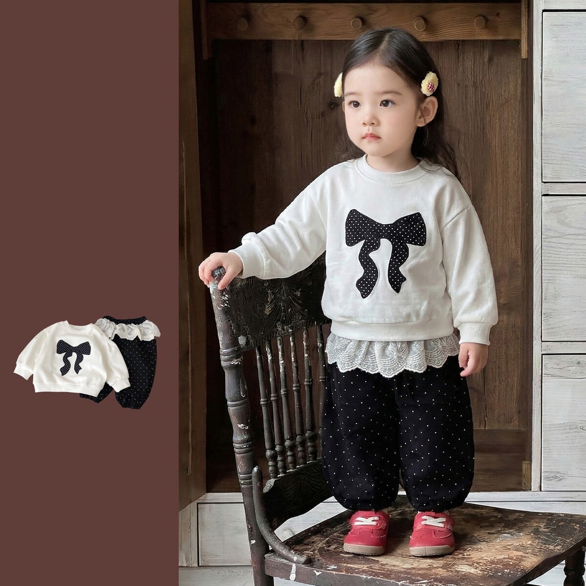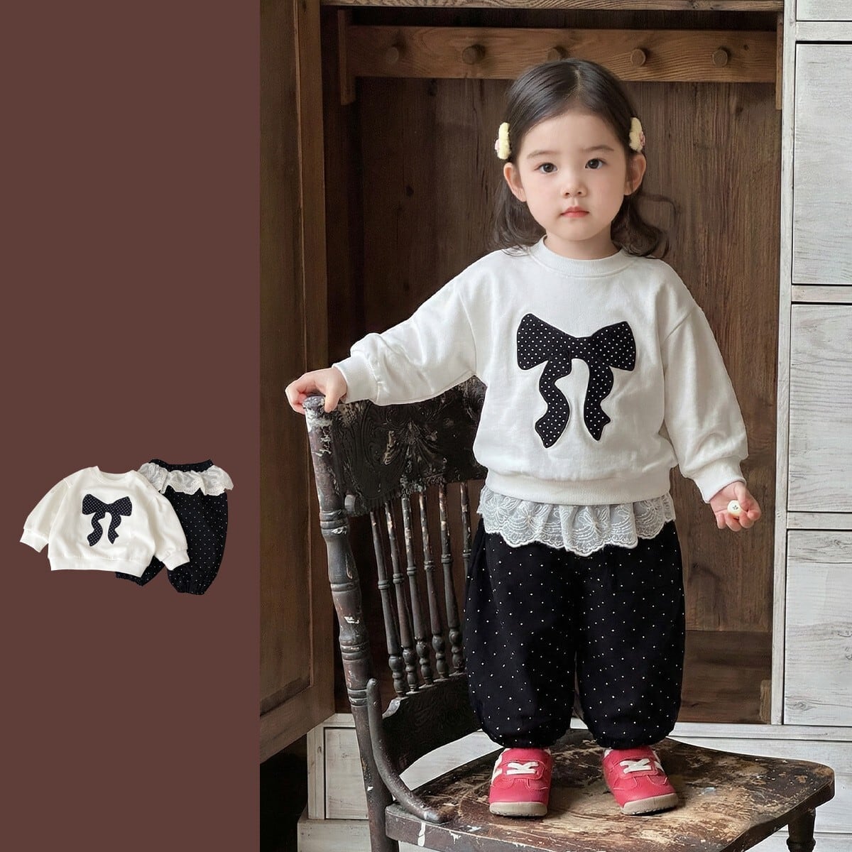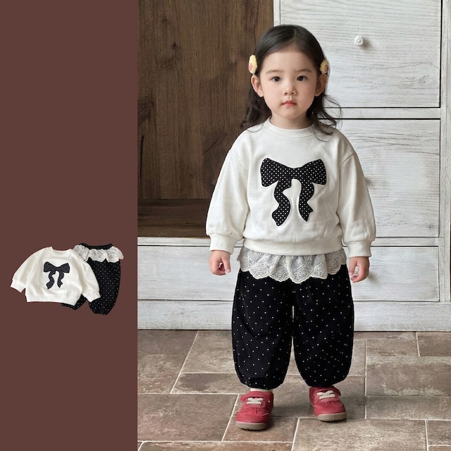 ベビー&キッズ 春新作 おしゃれ リボン パーカー & カジュアルパンツ 2点セット