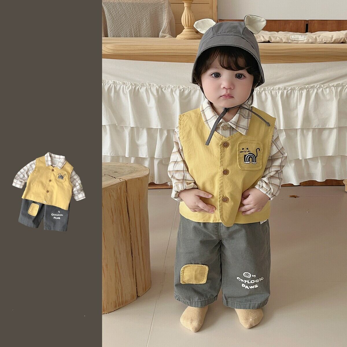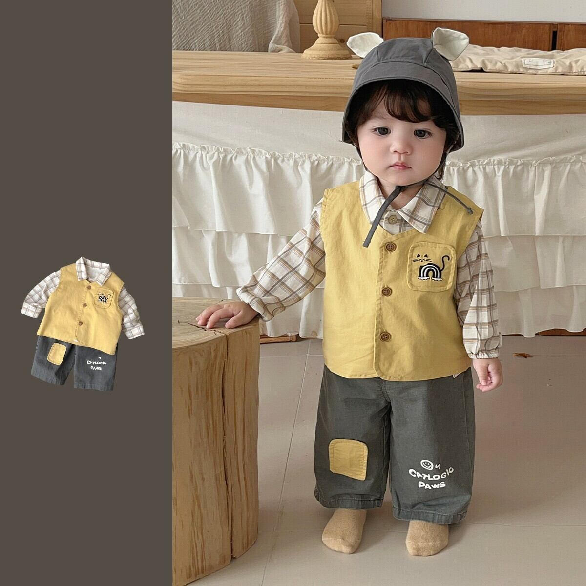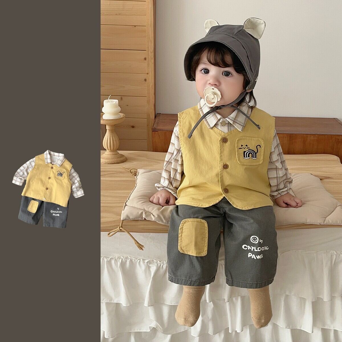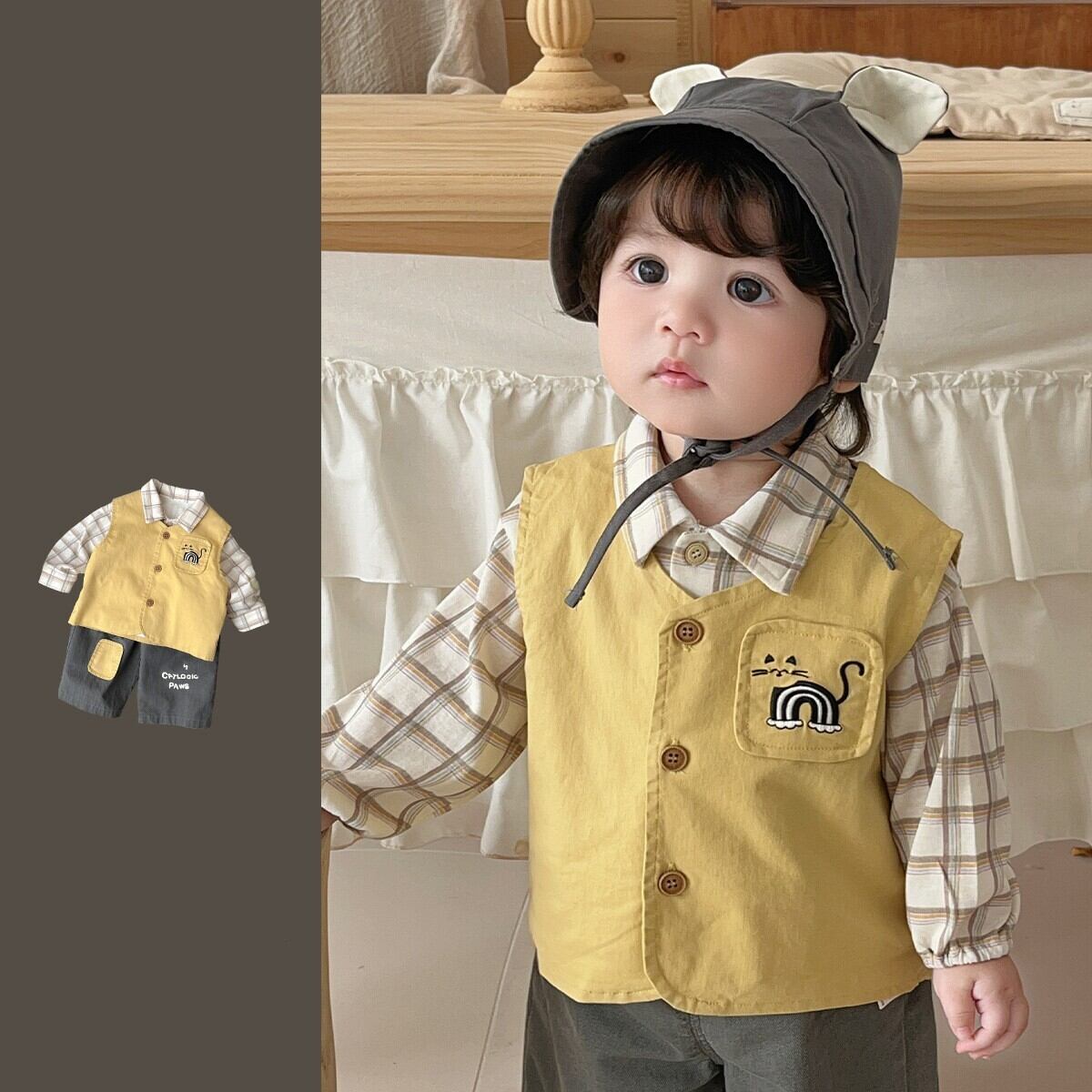 ベビー春新作 男の子用 韓国風 シャツ & ベスト & デニムパンツ 3点セット