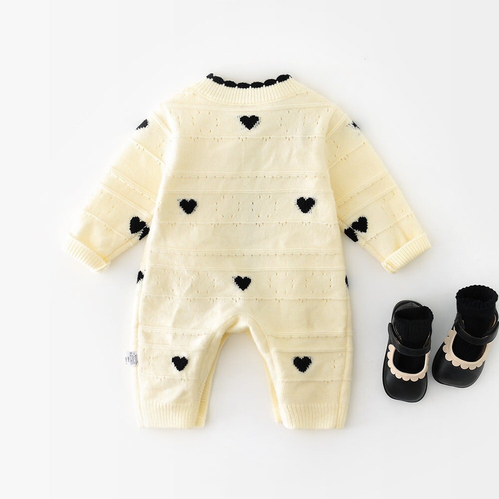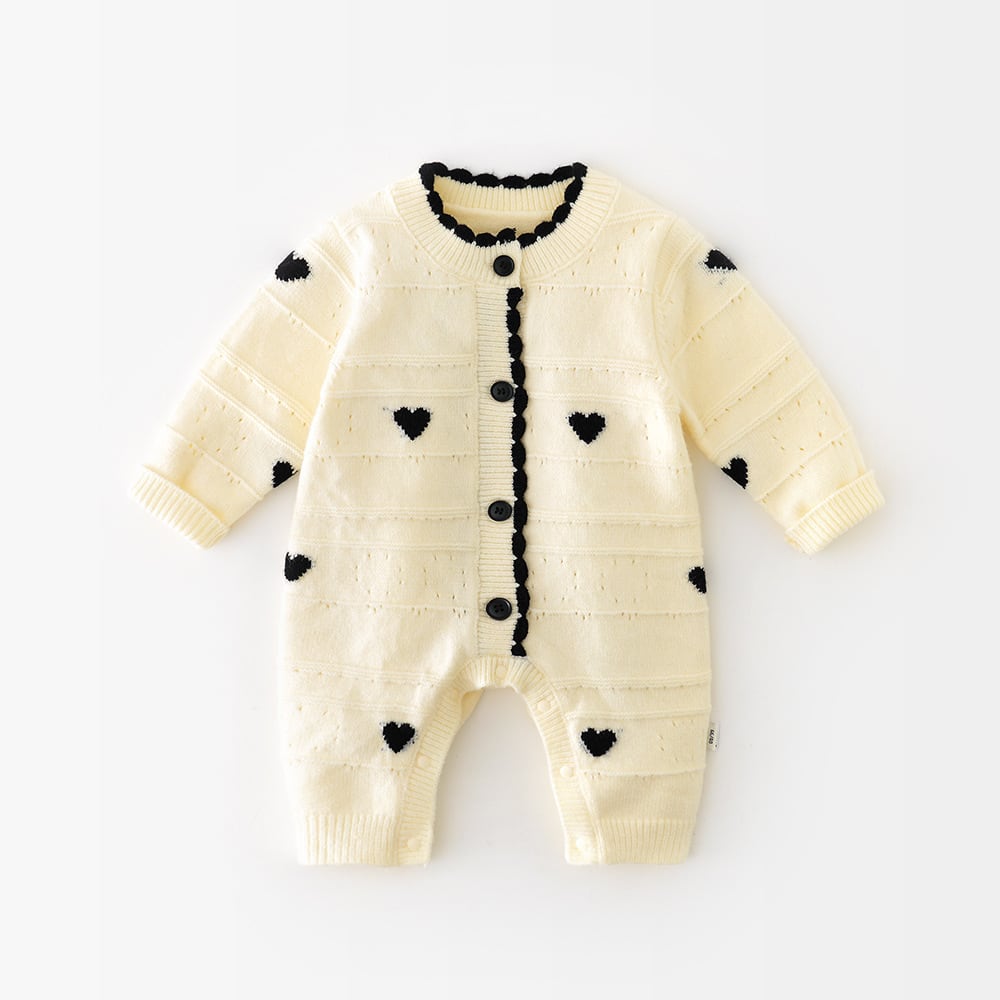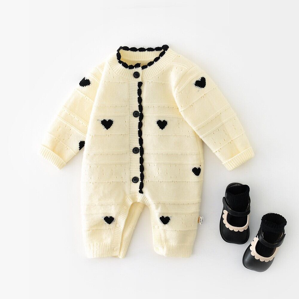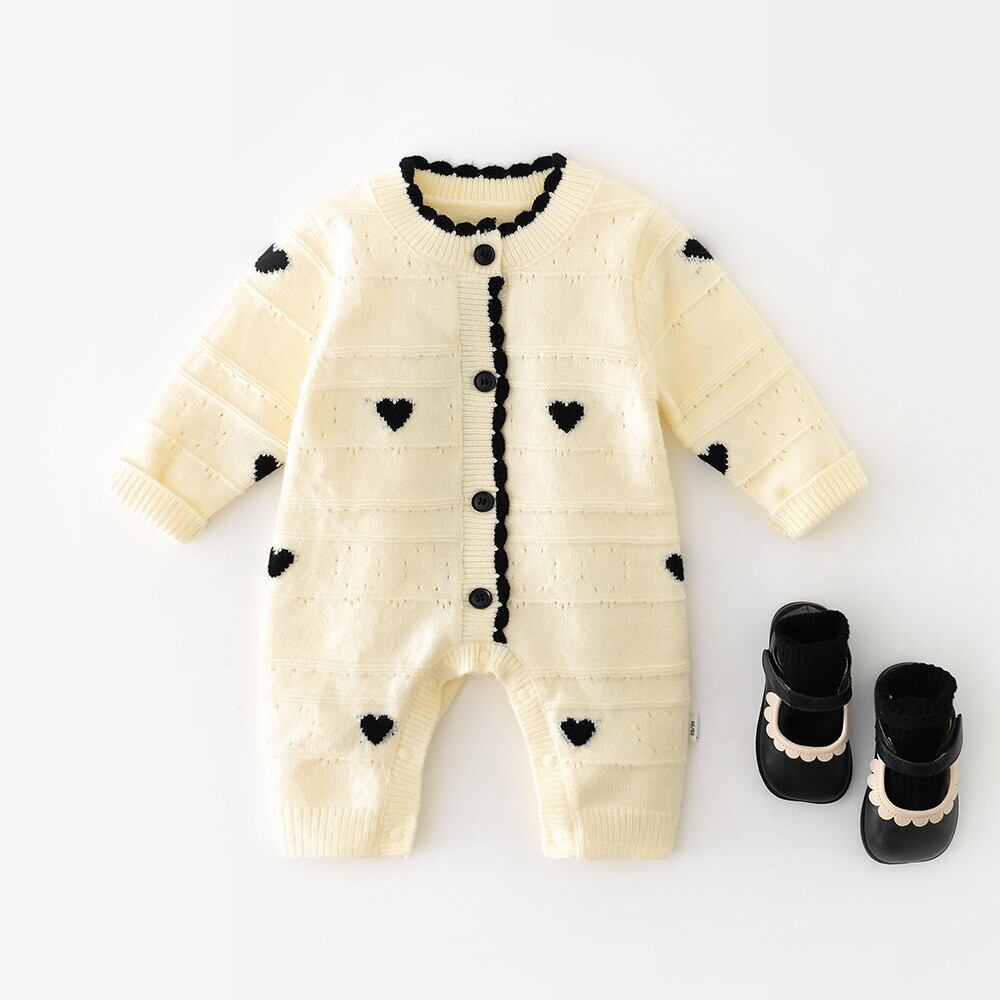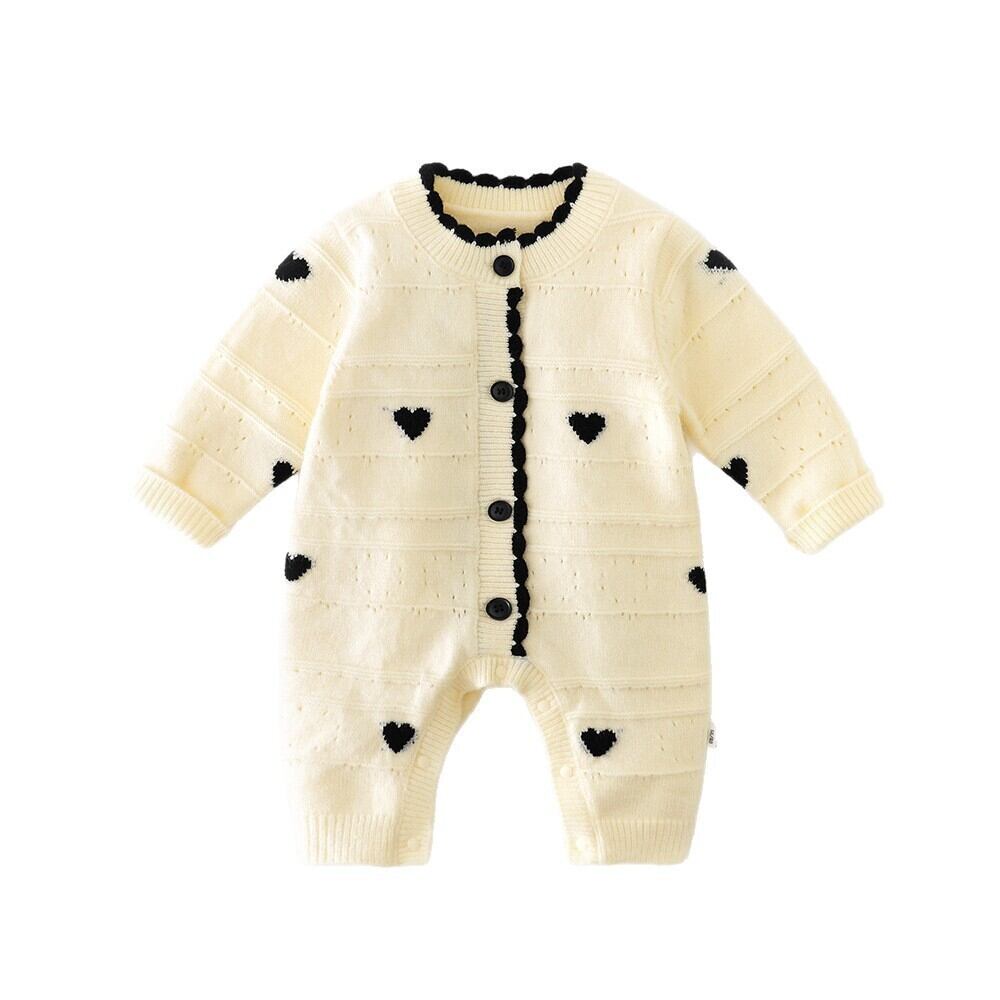 ベビー 春新作 韓国風 女の子用 ハート 長袖 シングルボタン カバーオール