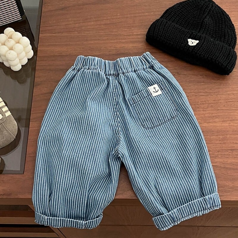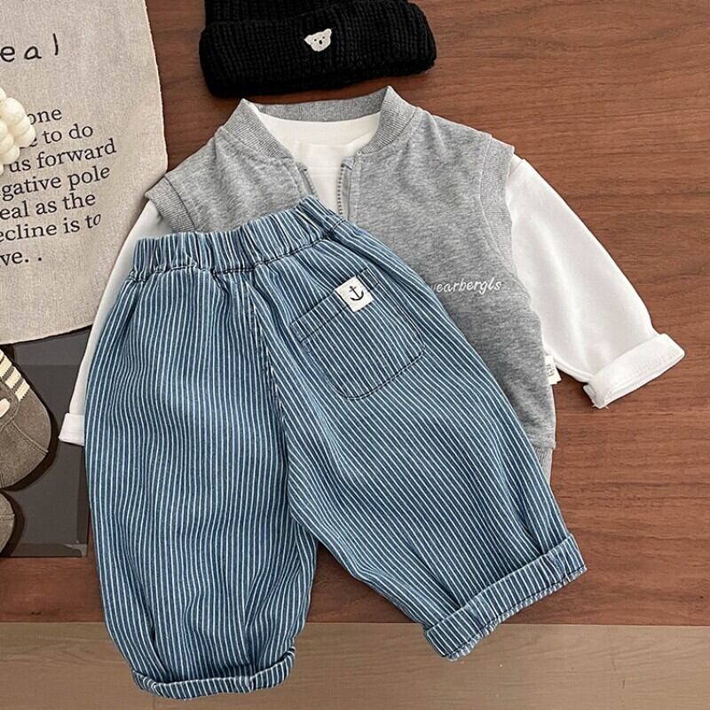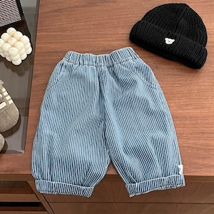 ベビー 春新作 韓国風 ストライプ ゆったり デニム パンツ