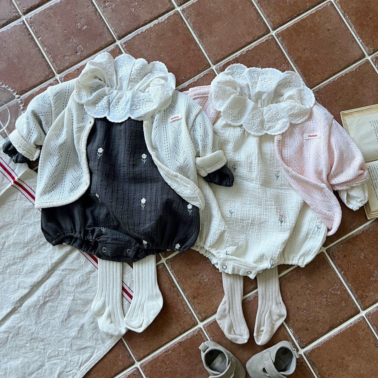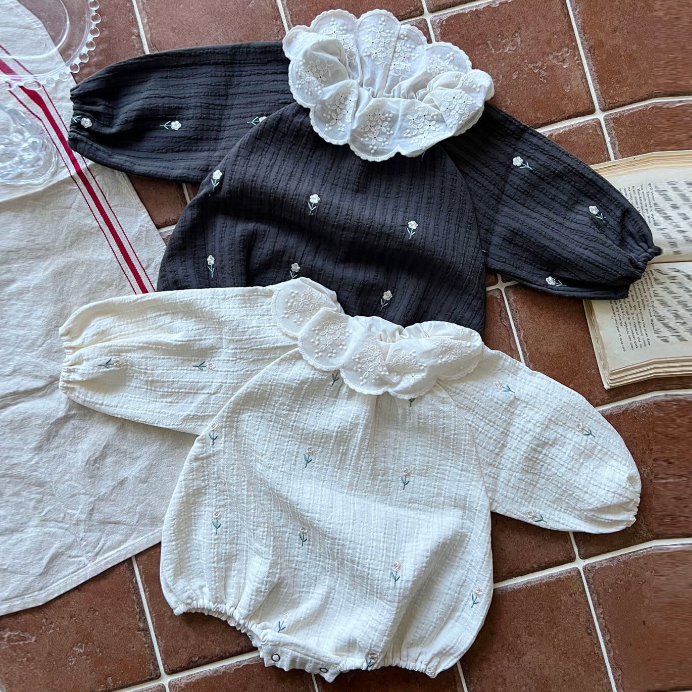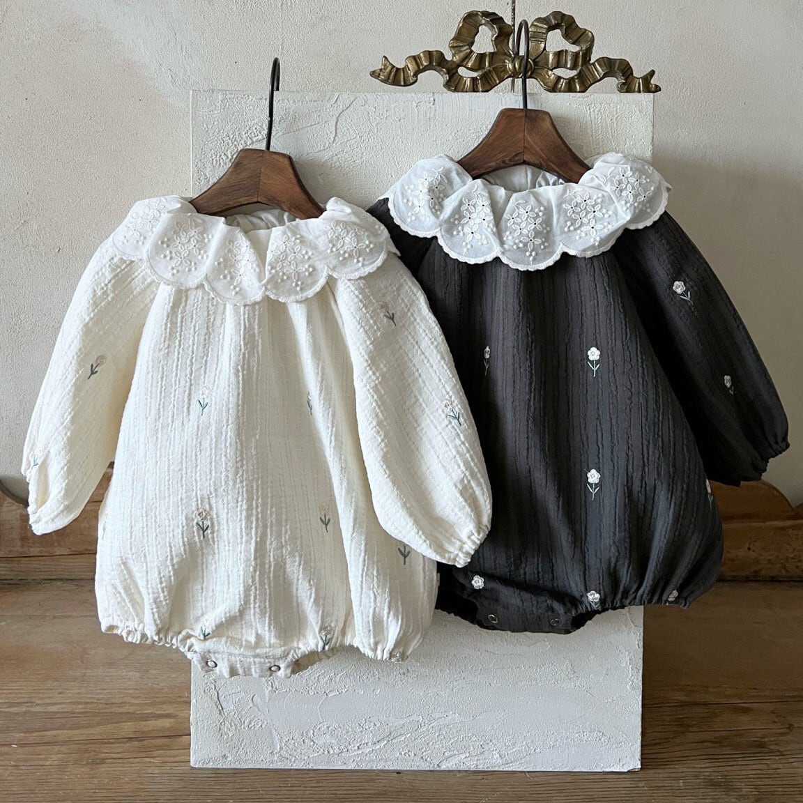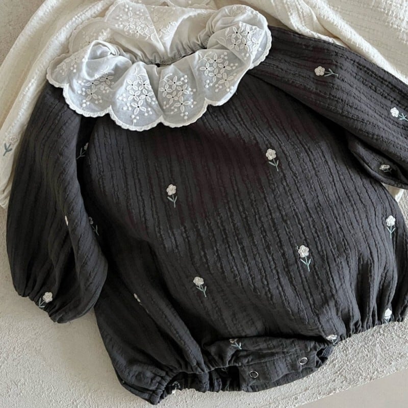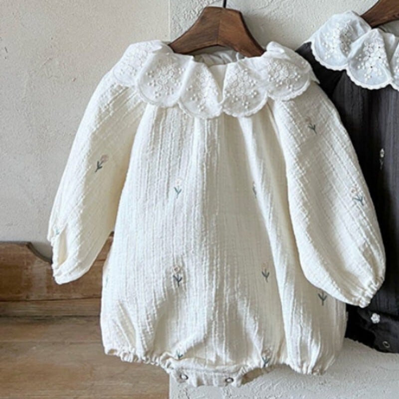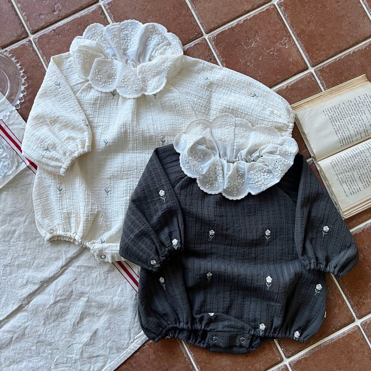 ベビー 春新作 刺繍小花 襟付き ロンパース