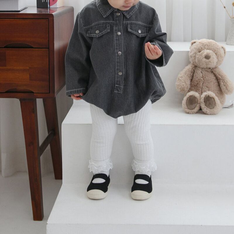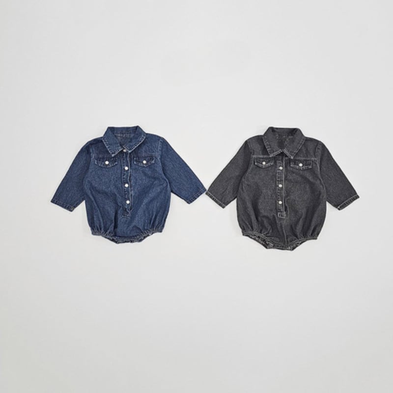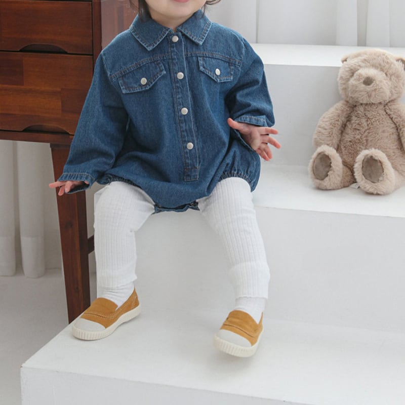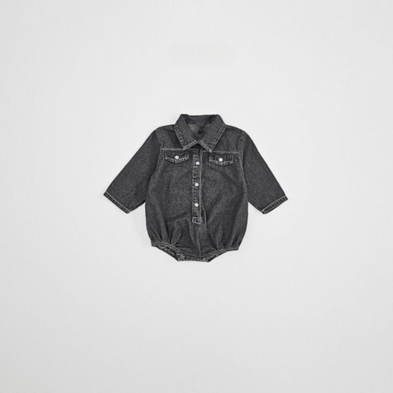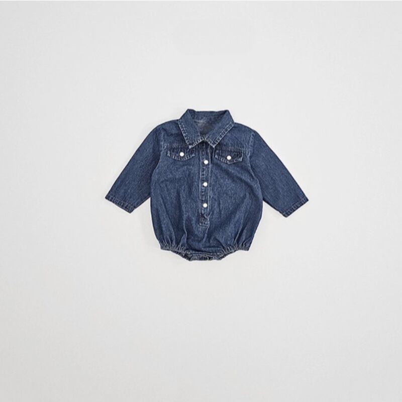ベビー 春新作 韓国風 無地 襟付き デニム ロンパース