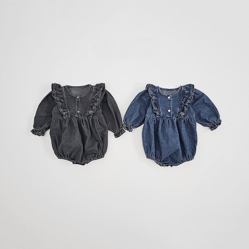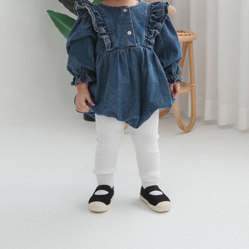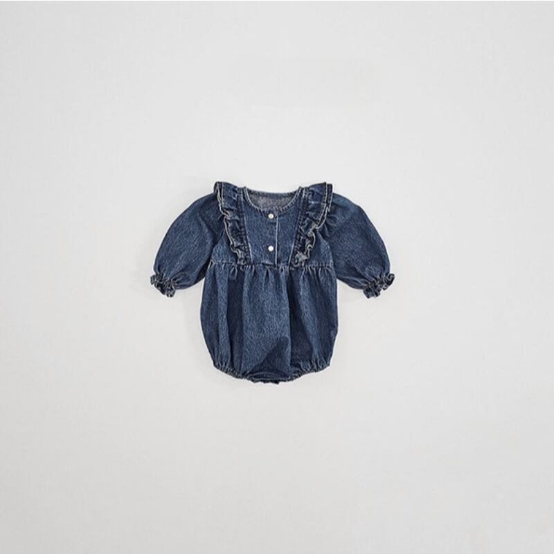 ベビー 春新作 韓国風 女の子 無地 デニム ロンパース