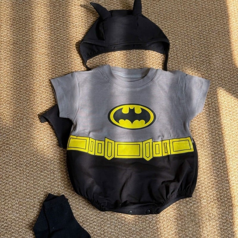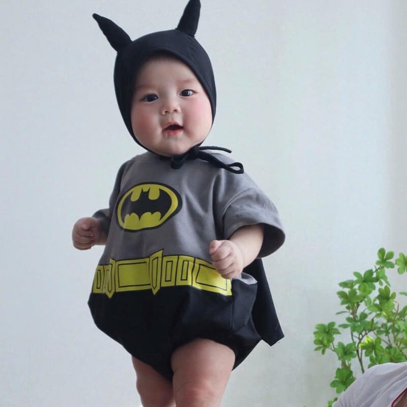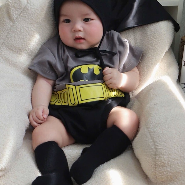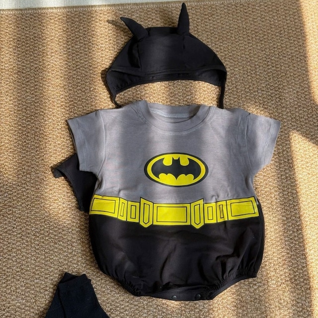 ベビー 春新作 韓国風 半袖 バットマン ロンパース 靴下付き