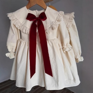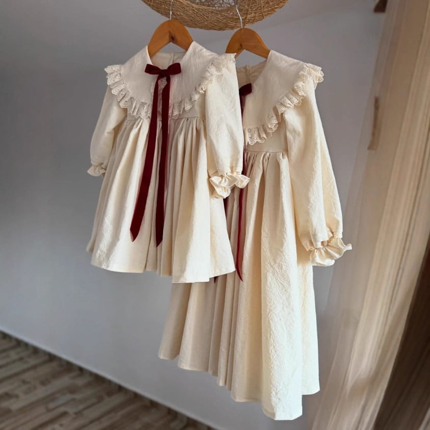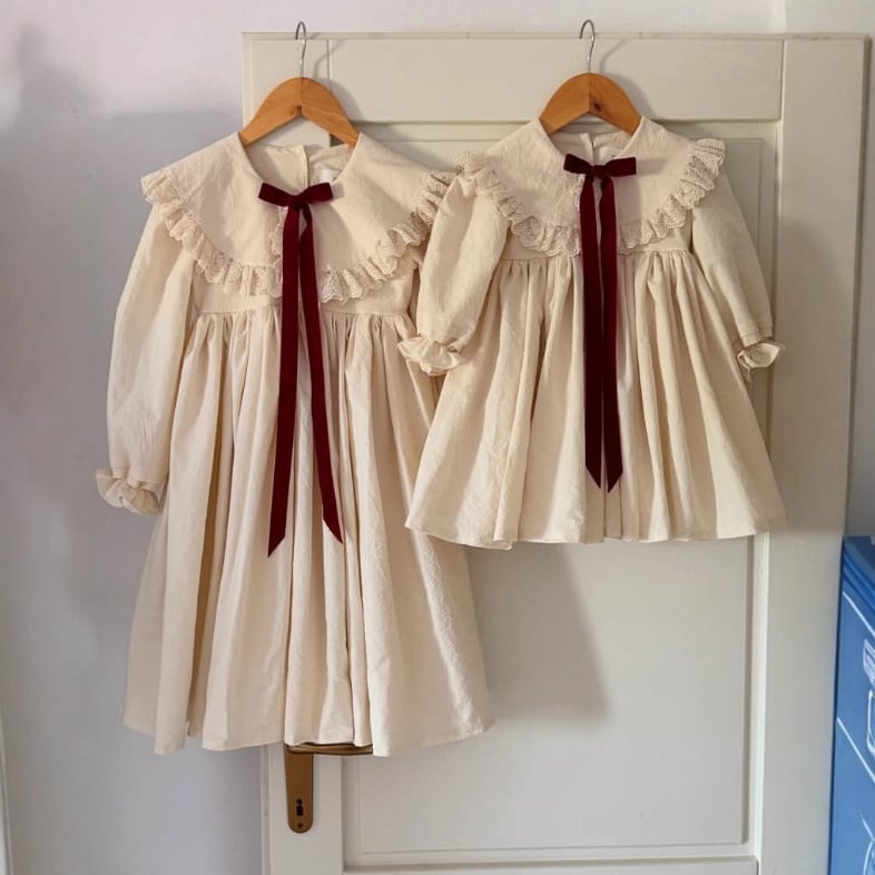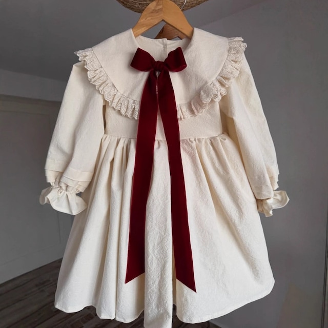 ベビー&キッズ 春新作 ロシア風 女の子 リネン混 春夏 レース ワンピース リボン フレンチ ドレス