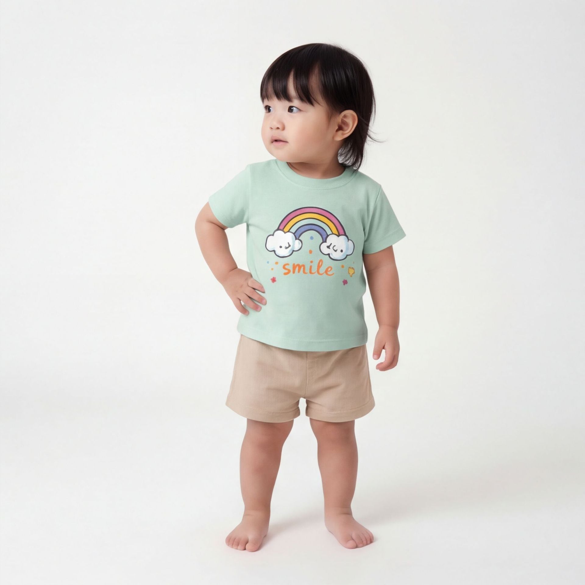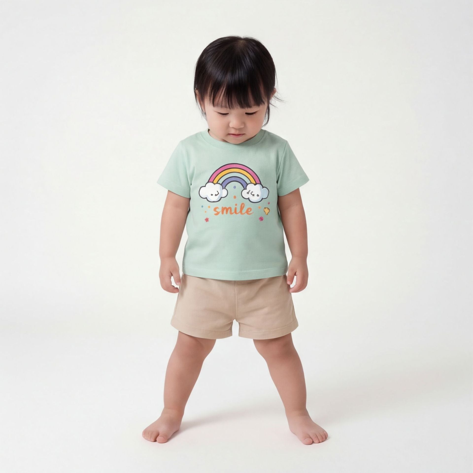 ベビー&キッズ 夏新作 韓国風 レインボープリント 半袖Tシャツ