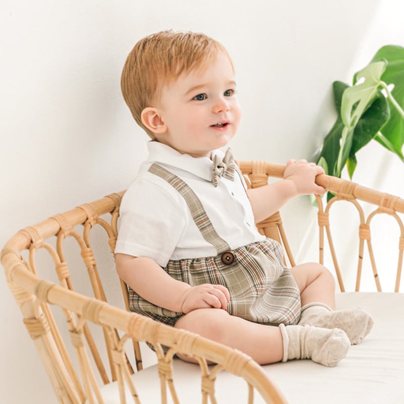 ベビー 夏新作 ボウタイ付き 半袖 ロンパース