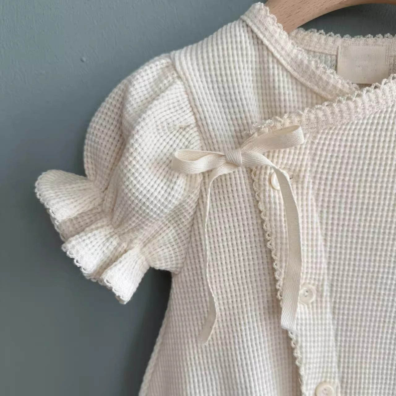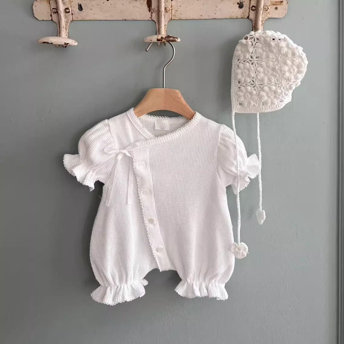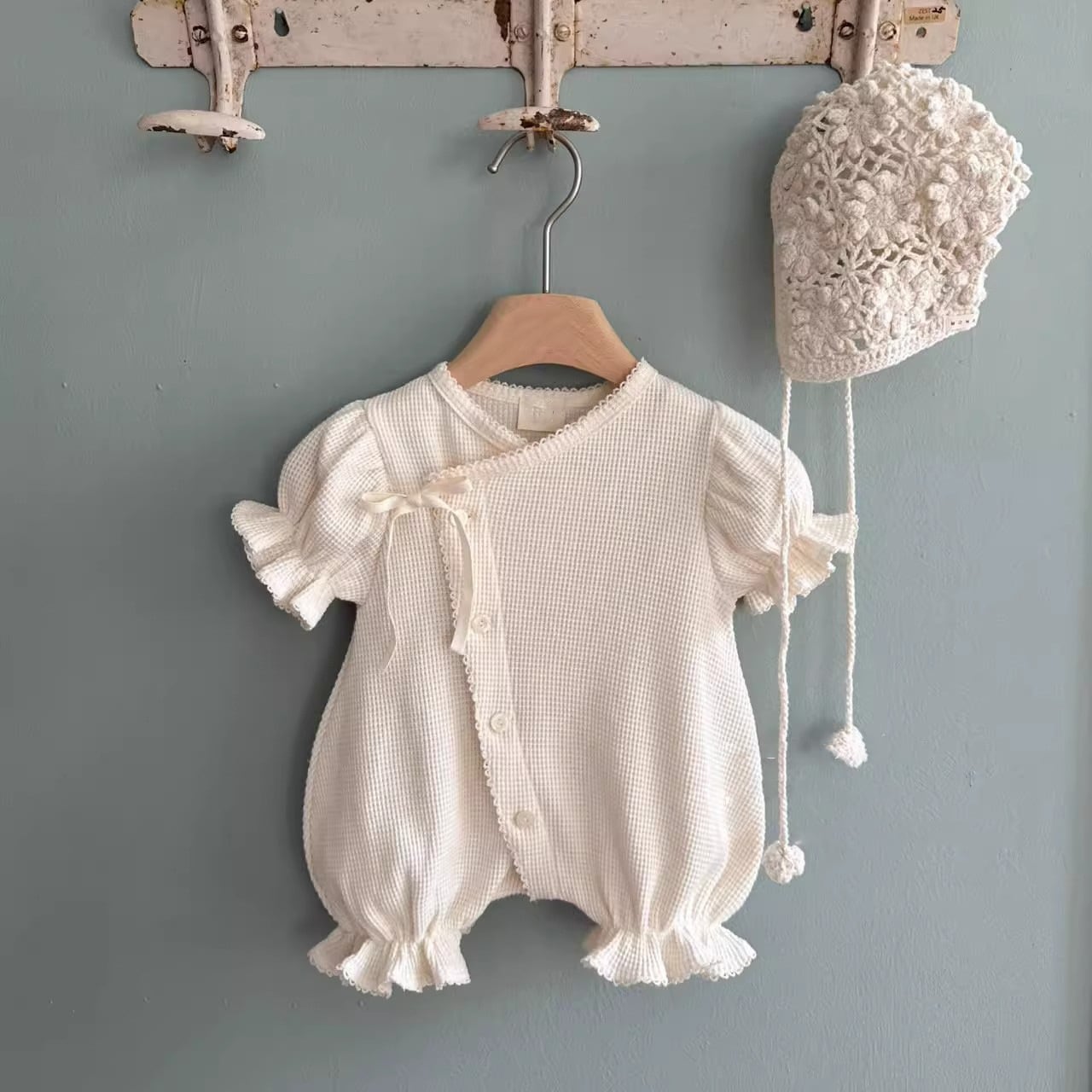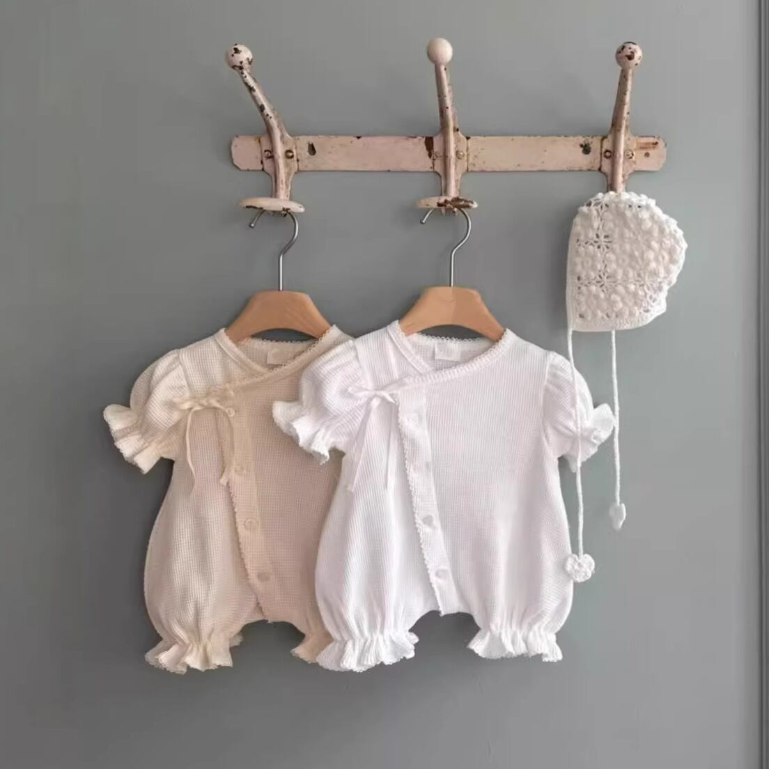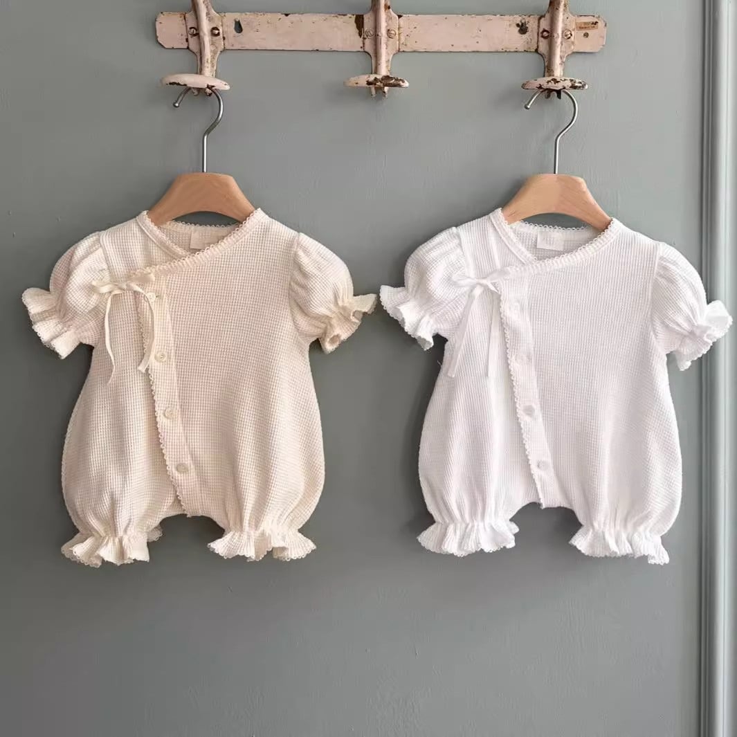 ベビー 夏新作 韓国風 女の子 綿 斜め前開き バブルスリーブ ロンパース