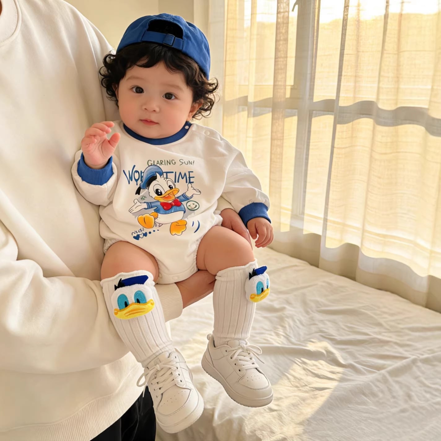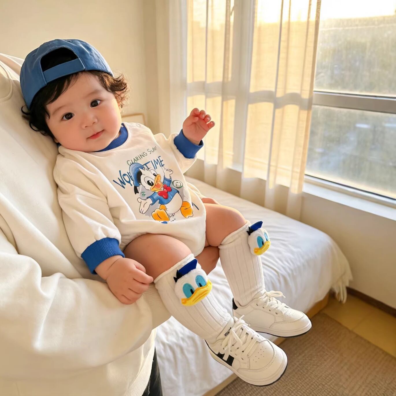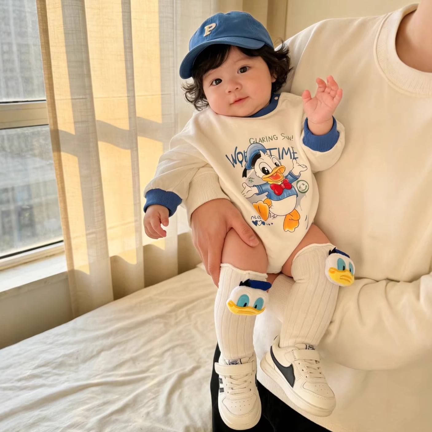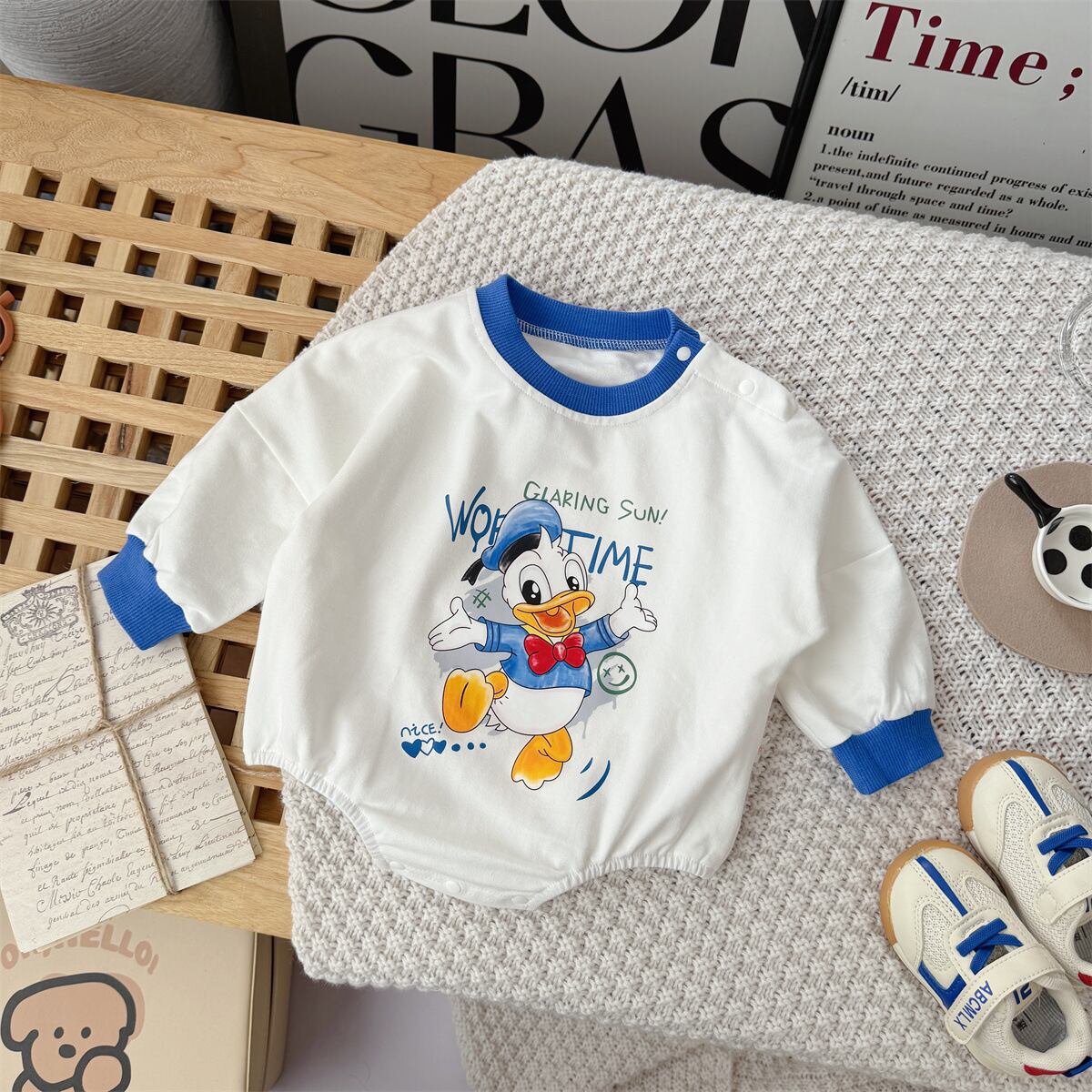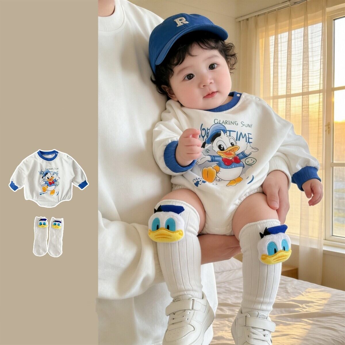 ベビー 春新作 ボディスーツ アヒル柄 綿 ロンパース