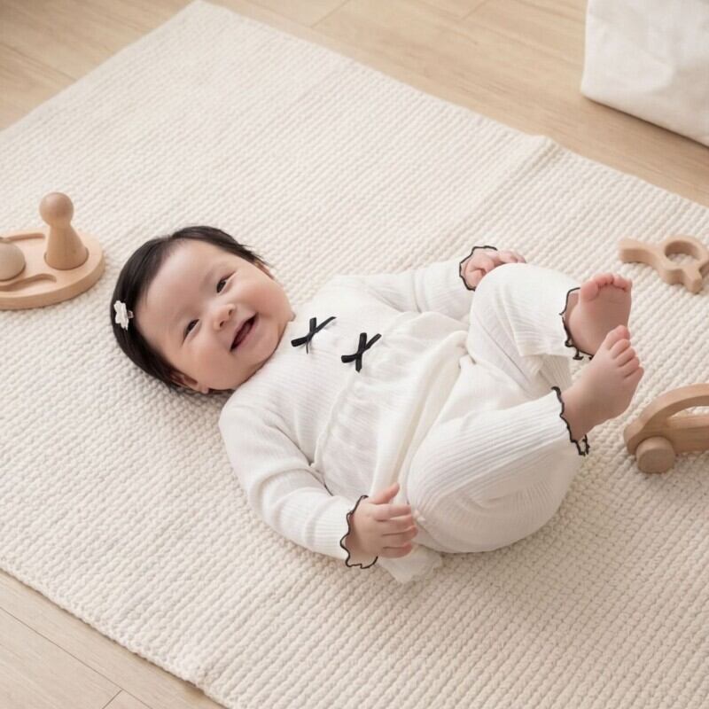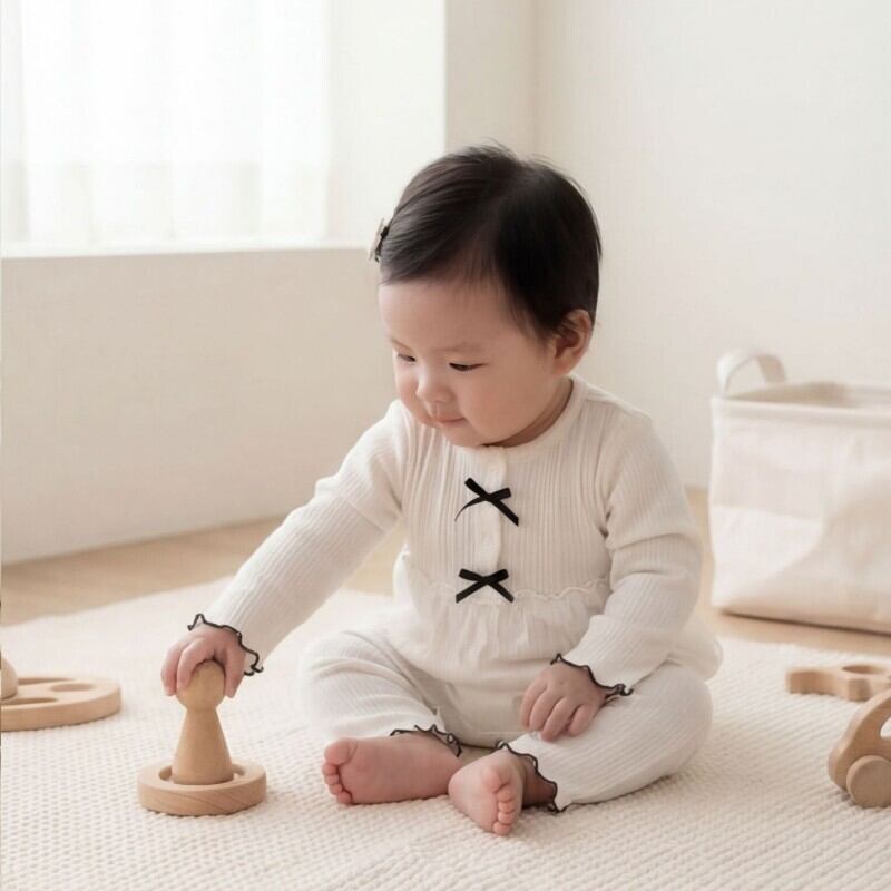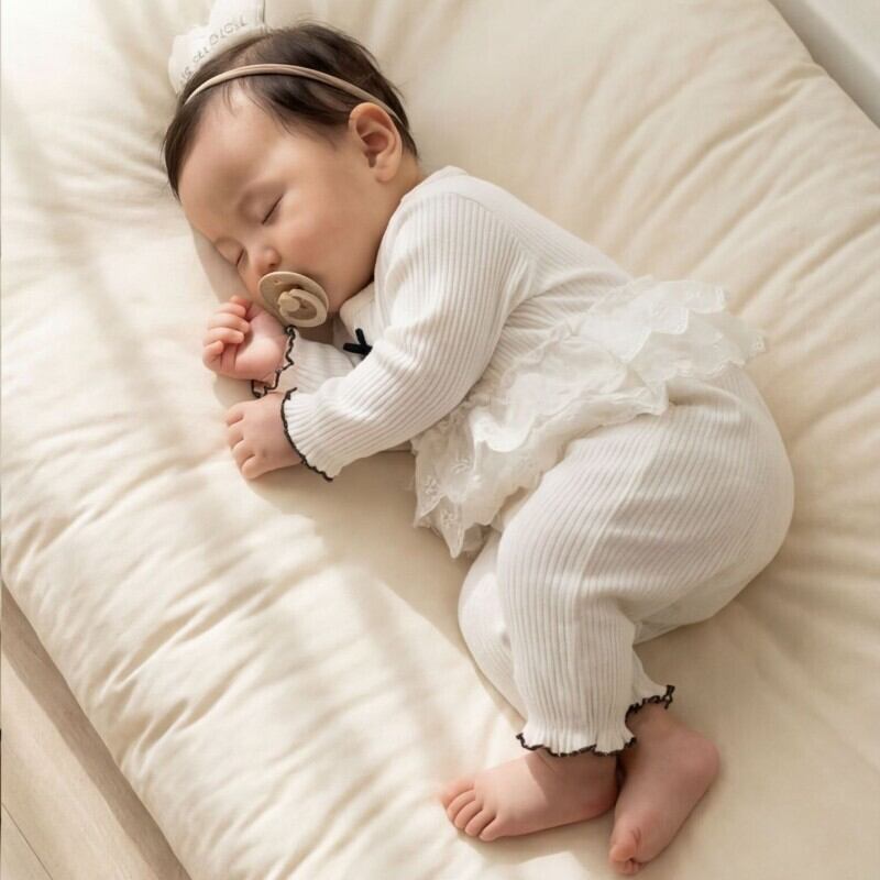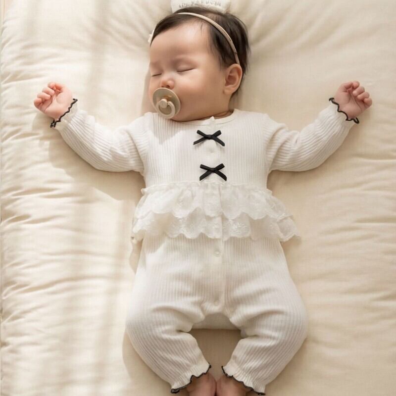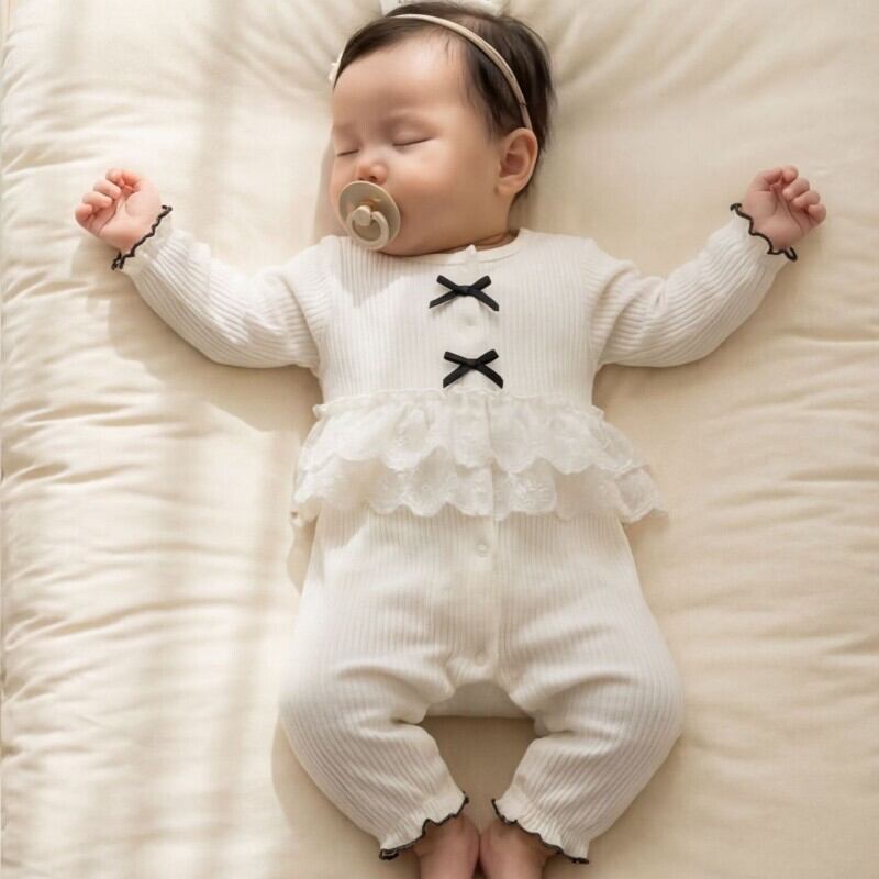 ベビー 韓国風 リボン レース パッチワーク カバーオール
