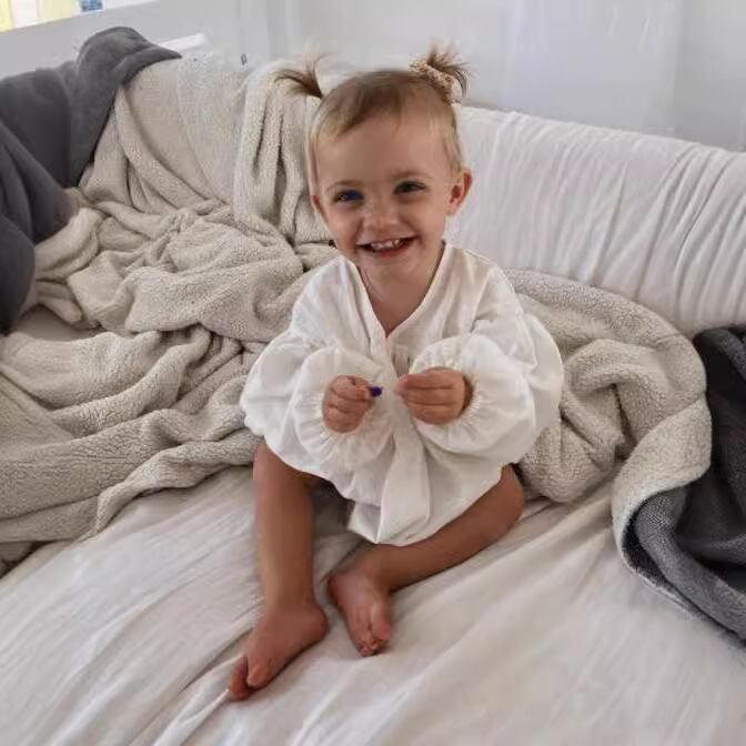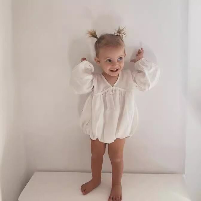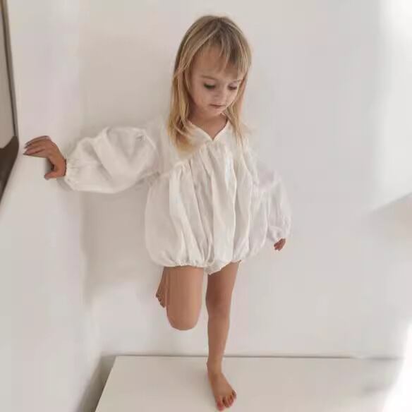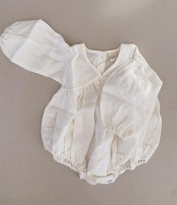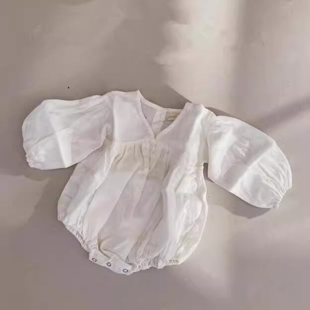 ベビー 春新作 リネンコットン パフスリーブ カジュアル ロンパース