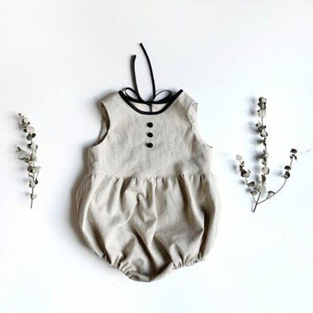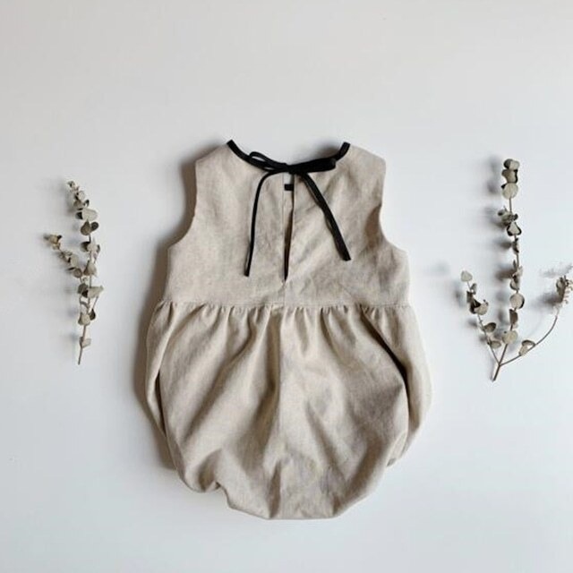 ベビー 夏新作 レトロ ミニマリズム リボン付き ロンパース