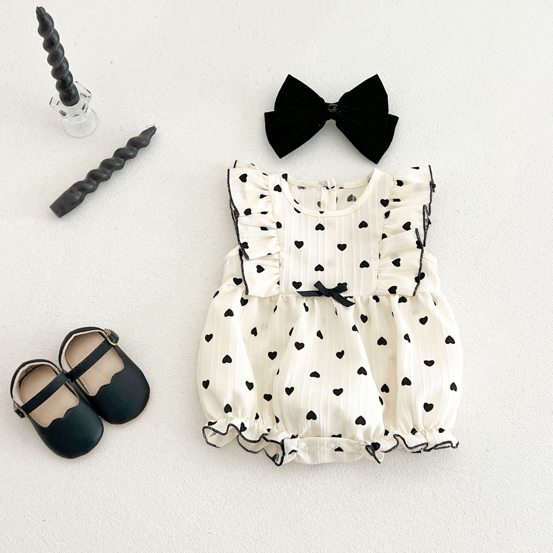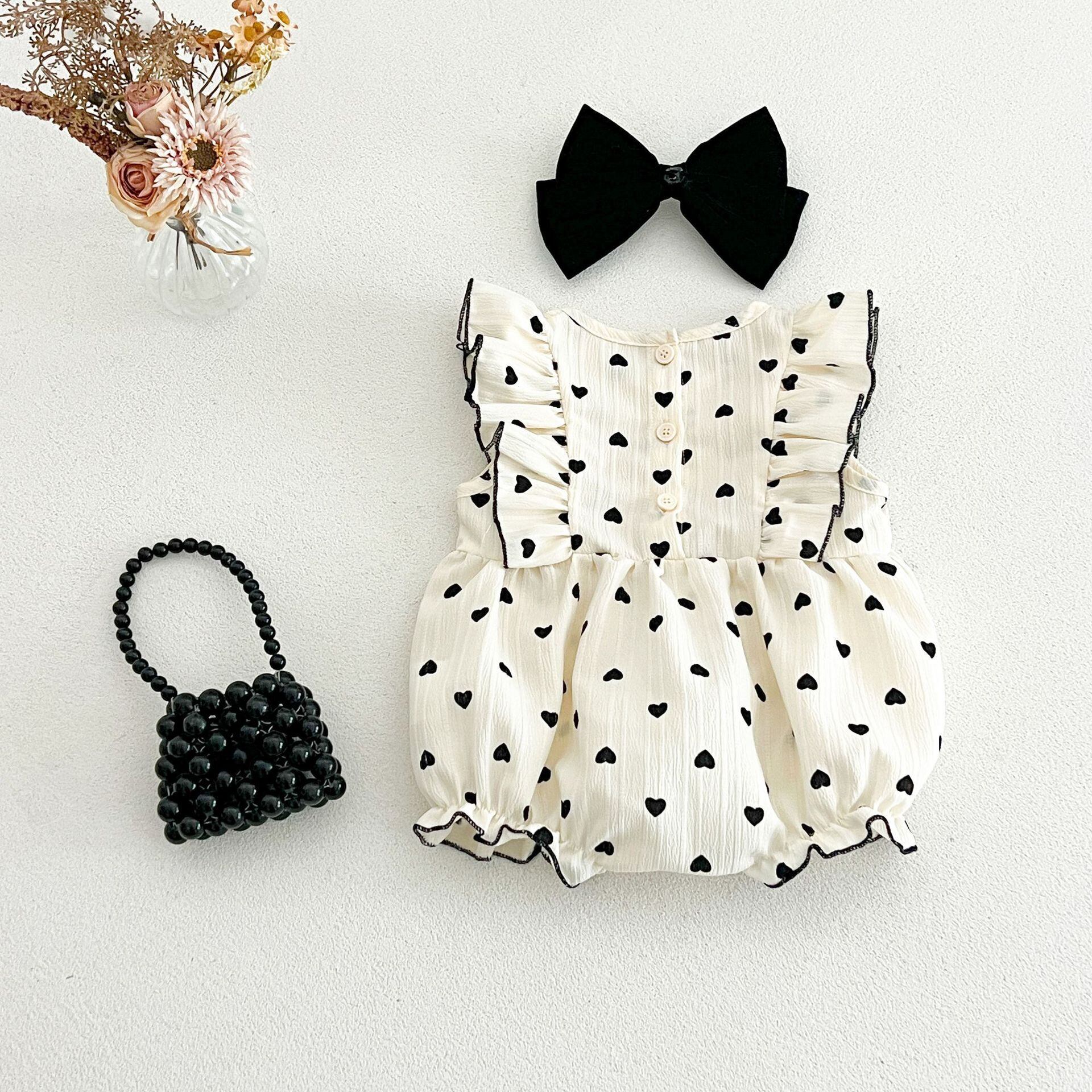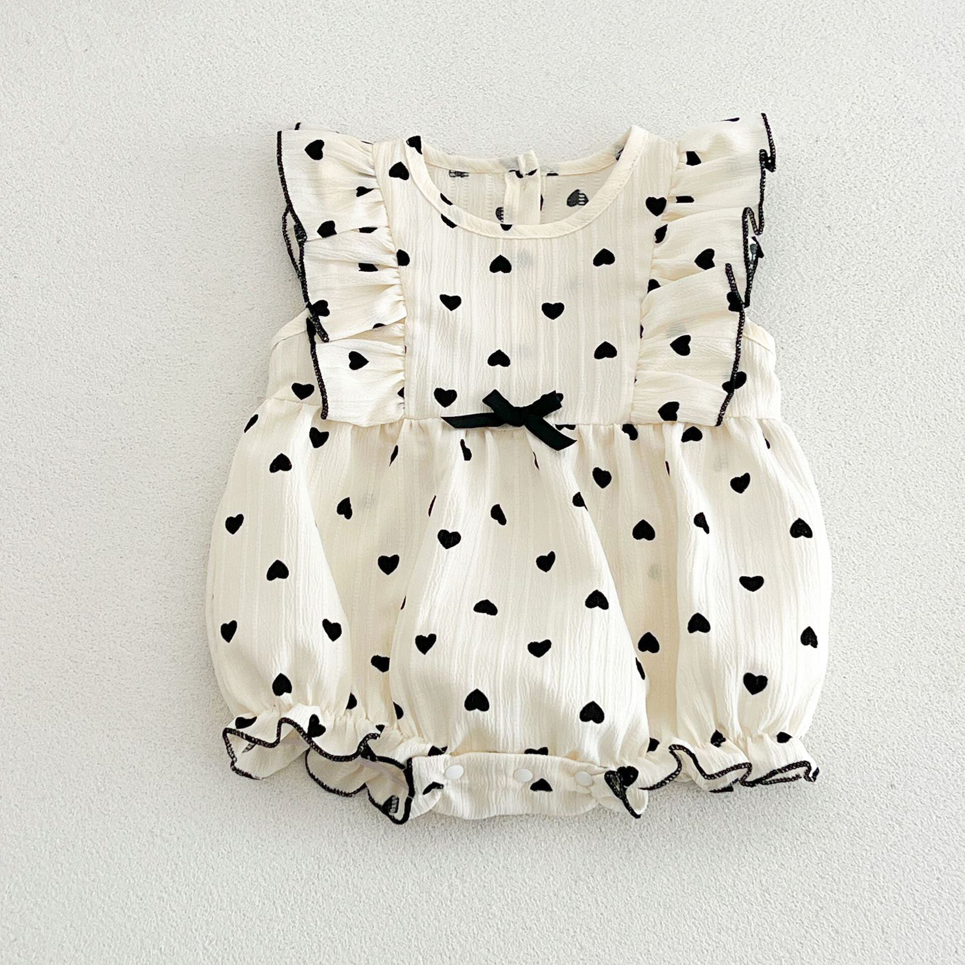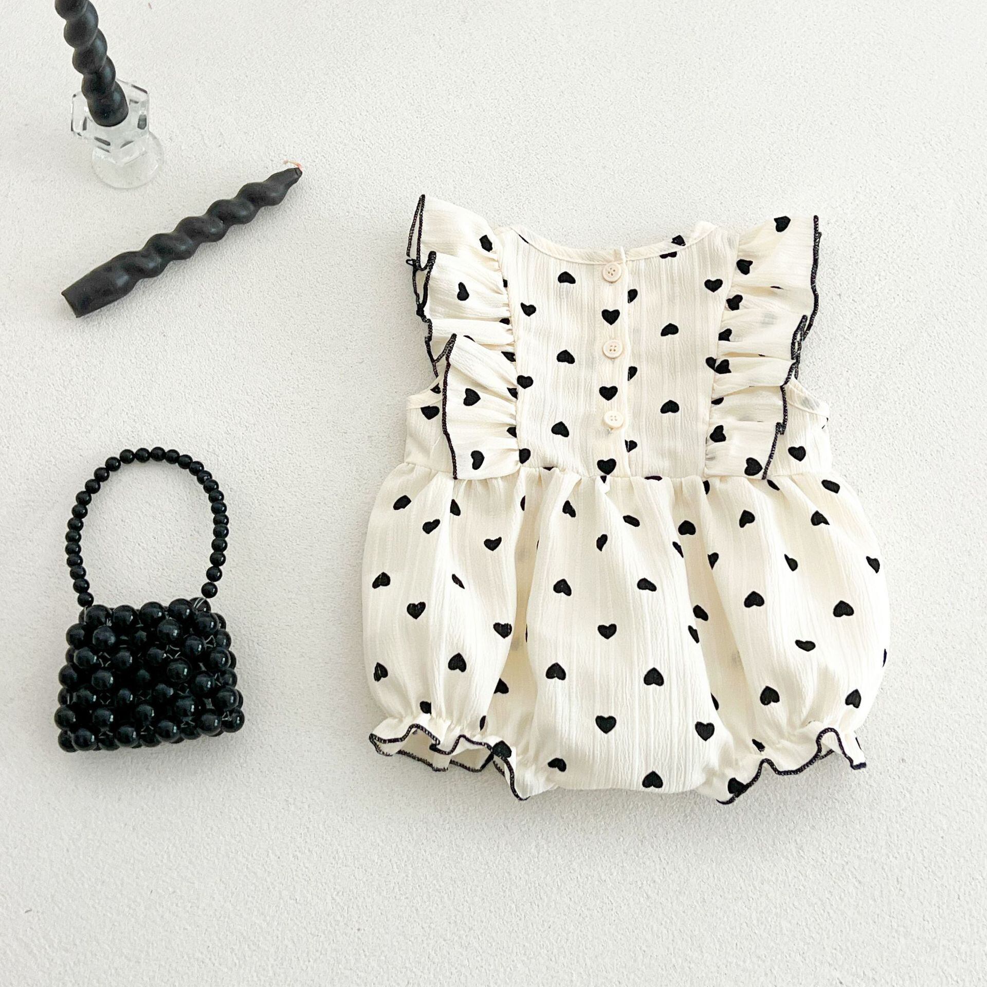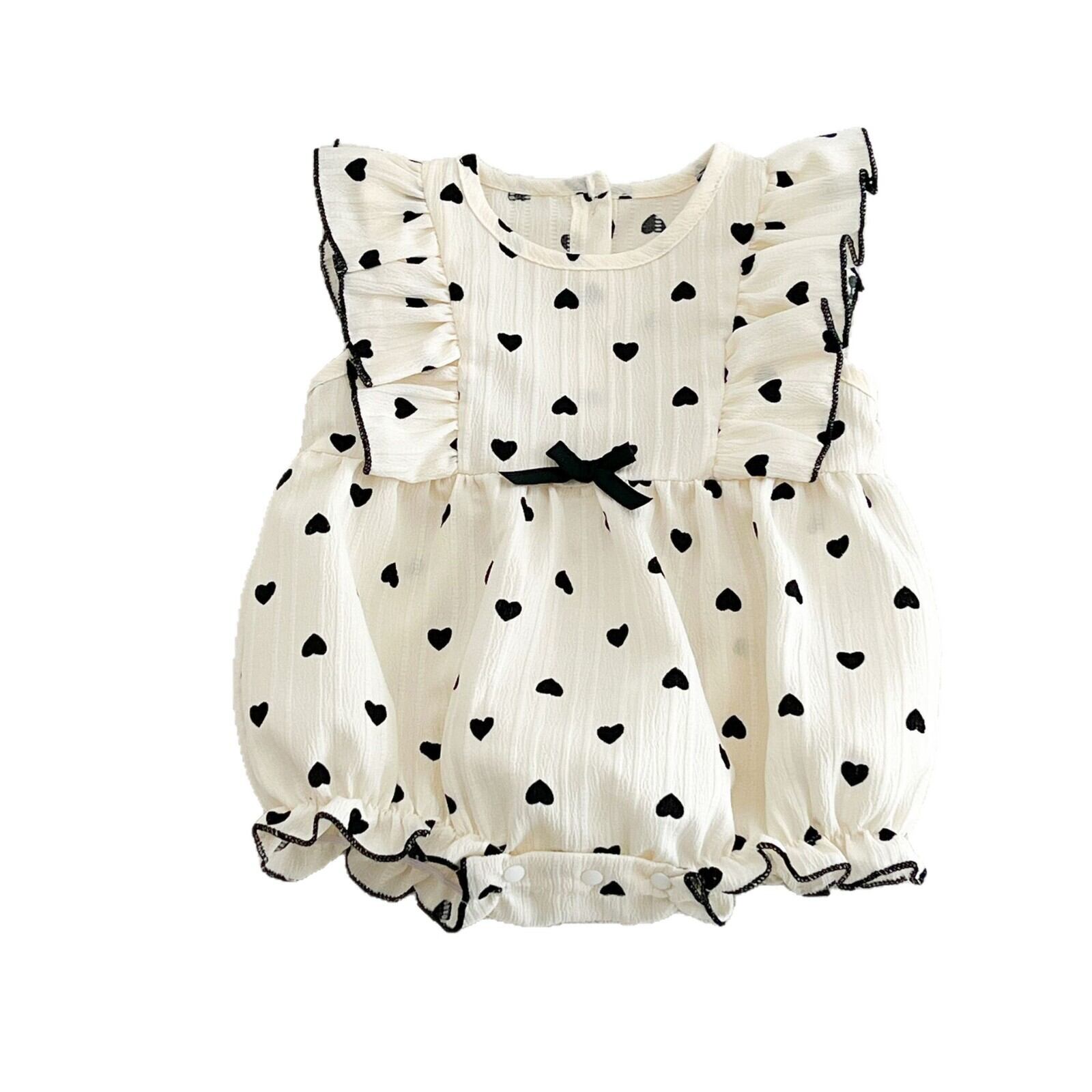 ベビー 韓国風 ドットプリント フライスリーブ ロンパース