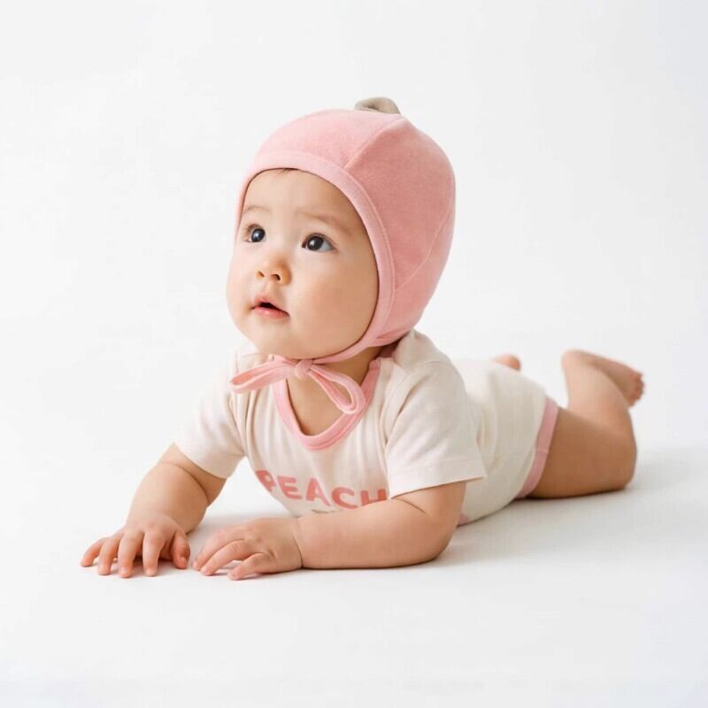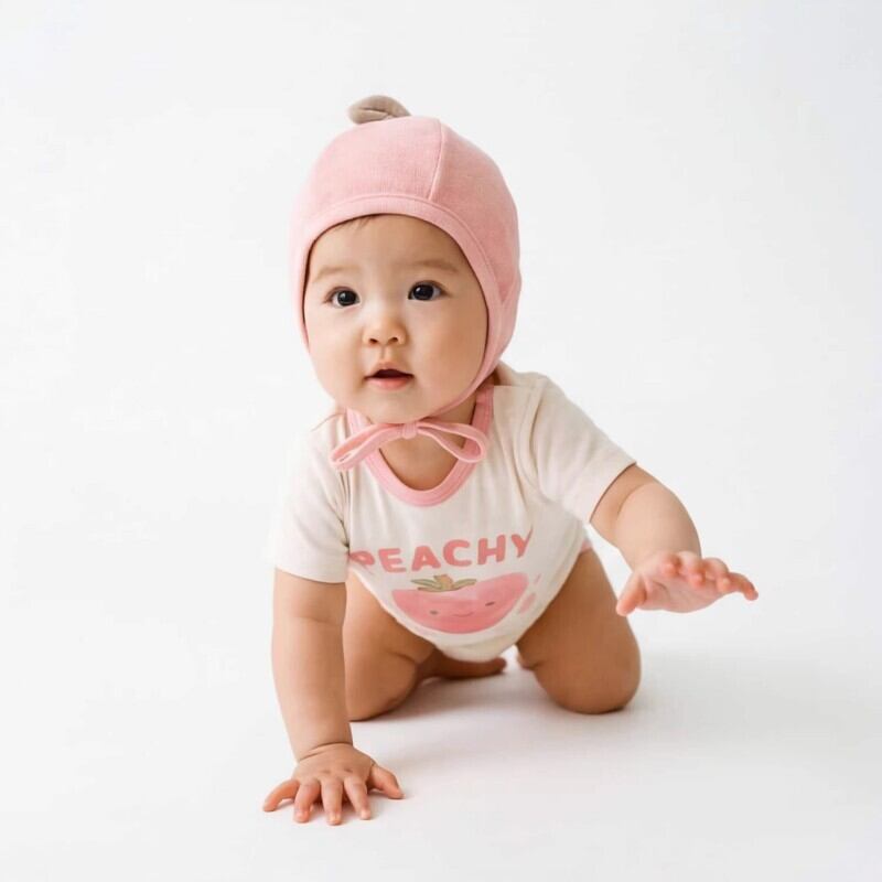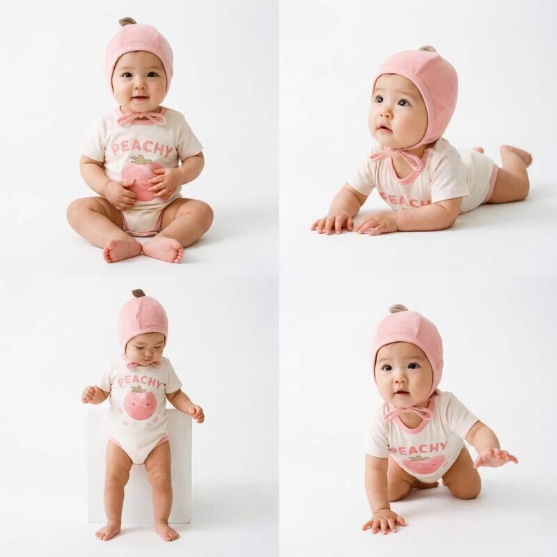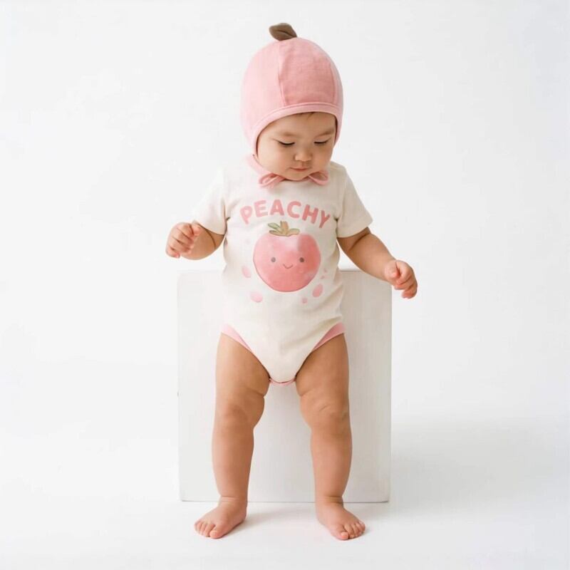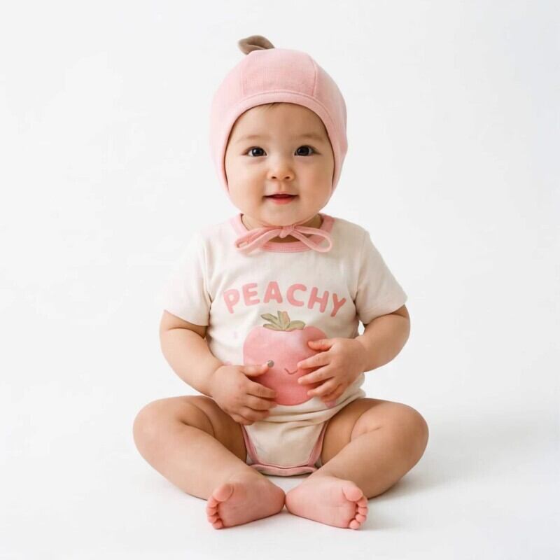 ベビー 2026新作 韓国風 半袖 ピーチモチーフ ロンパース
