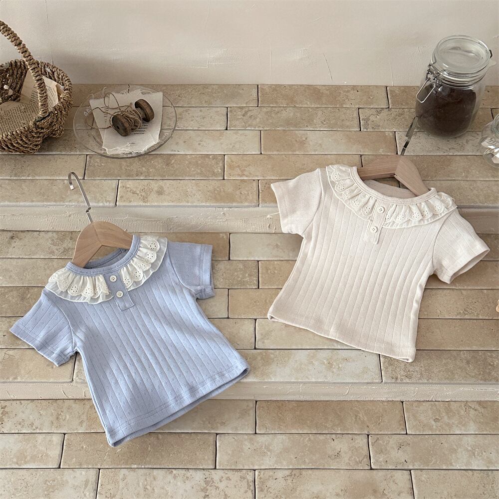 ベビー 夏新作 ダブルレース襟 半袖 Tシャツ