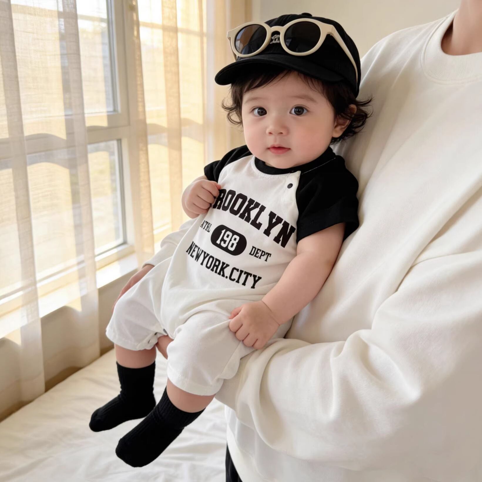 ベビー 夏新作 韓国風 「BROOKLYN」プリント 半袖 ロンパース