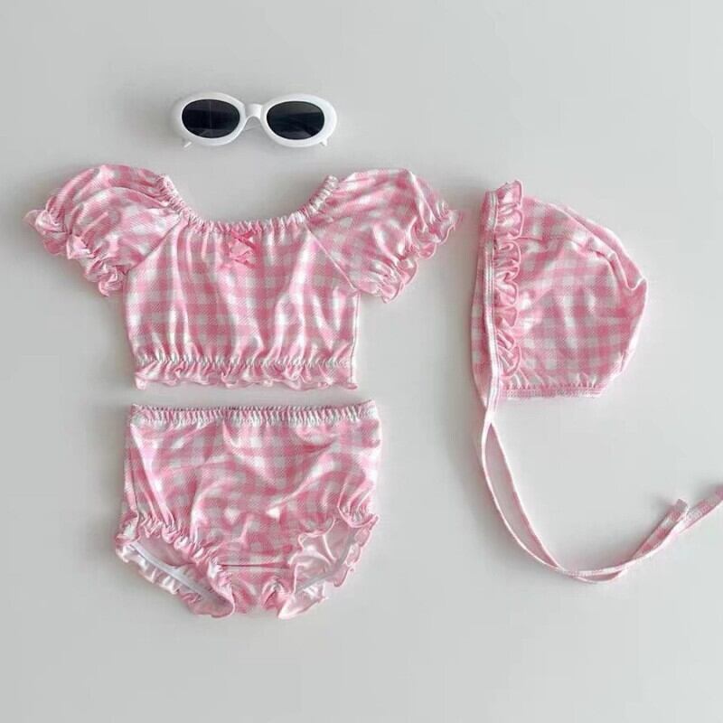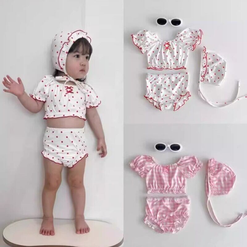 ベビー 夏新作 韓国風 セパレート水着 &キャップ 2点セット