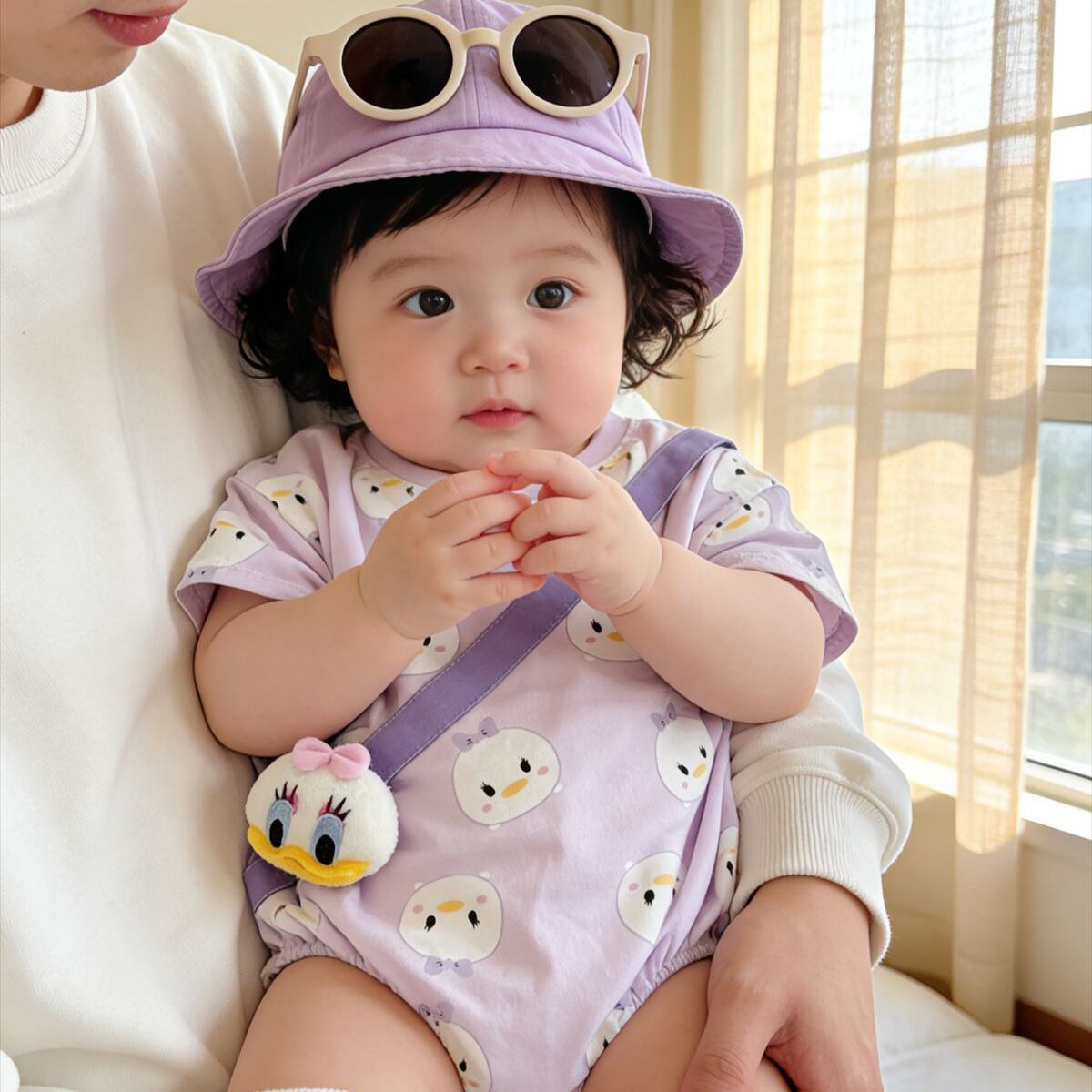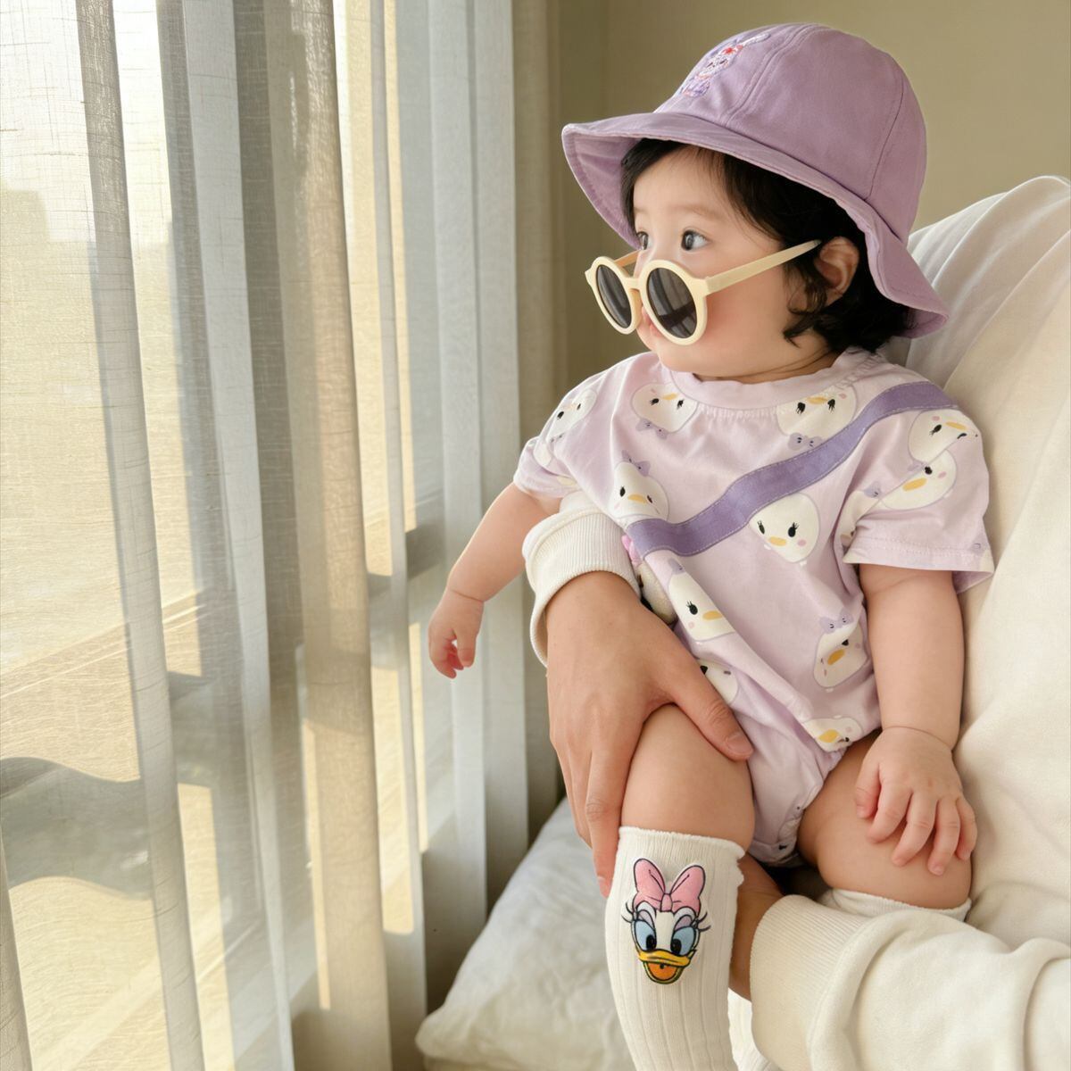 ベビー 夏新作 紫デイジー柄 ロンパース