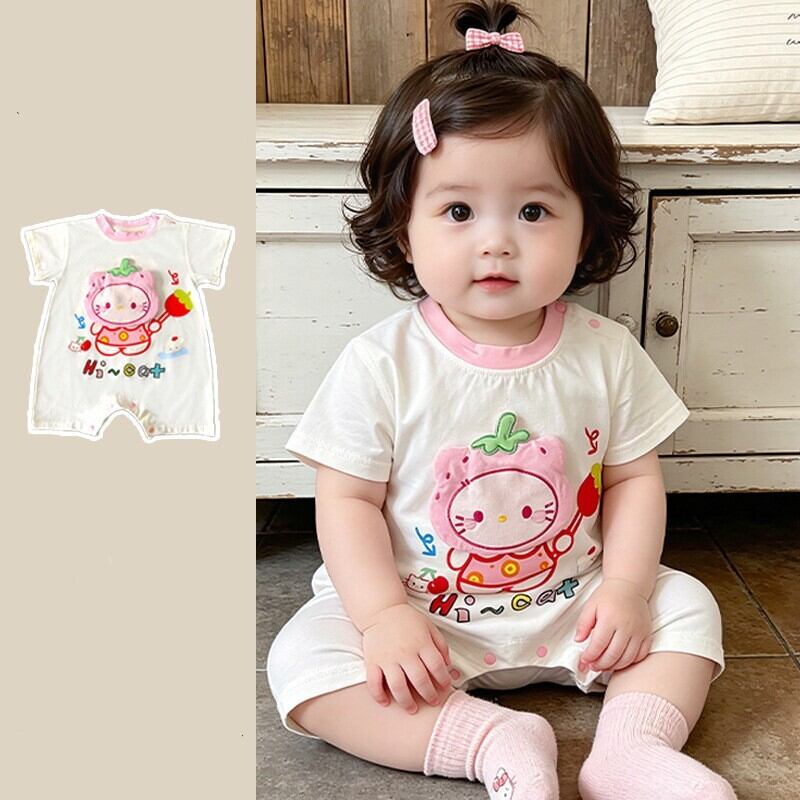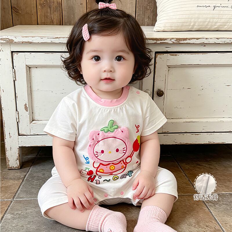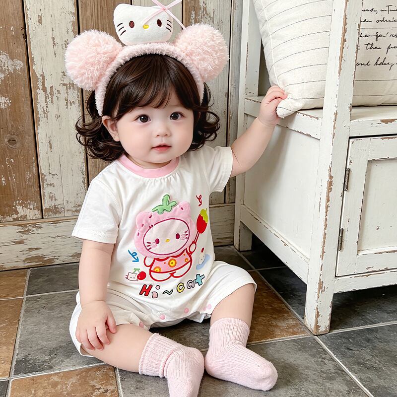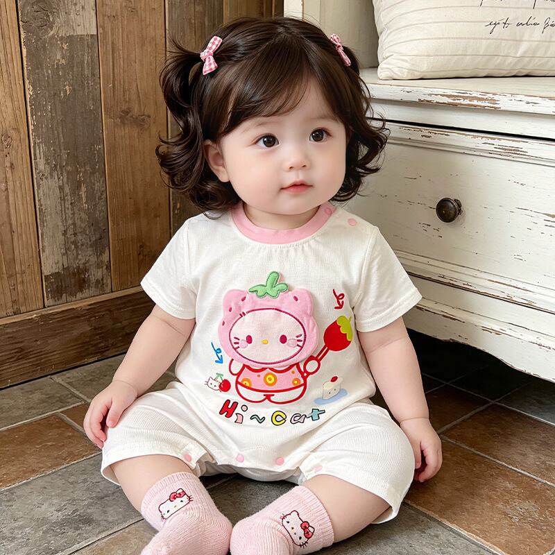 ベビー 夏新作 フードプリント 半袖 ロンパース