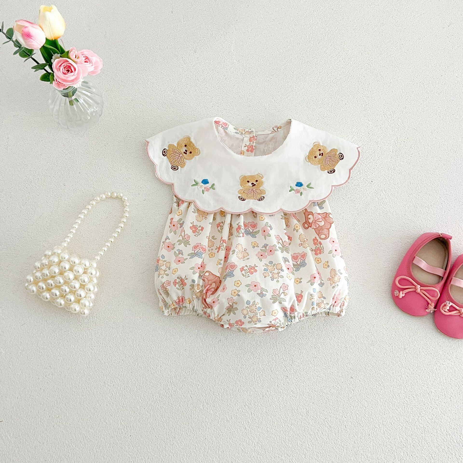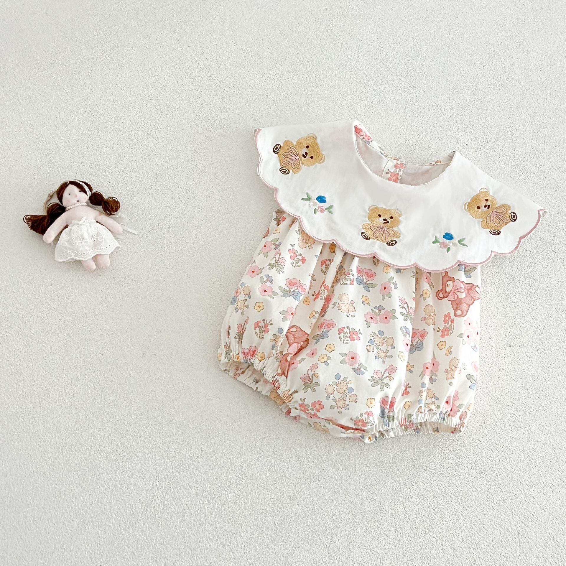 ベビー 夏新作 韓国風 クマ刺繍入り プリント ロンパース