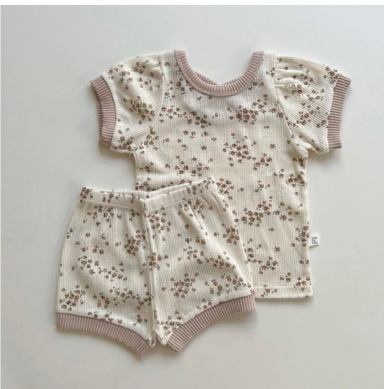 ベビー 夏新作 韓国風 小花柄 半袖 Tシャツ & 半ズボン セットアップ