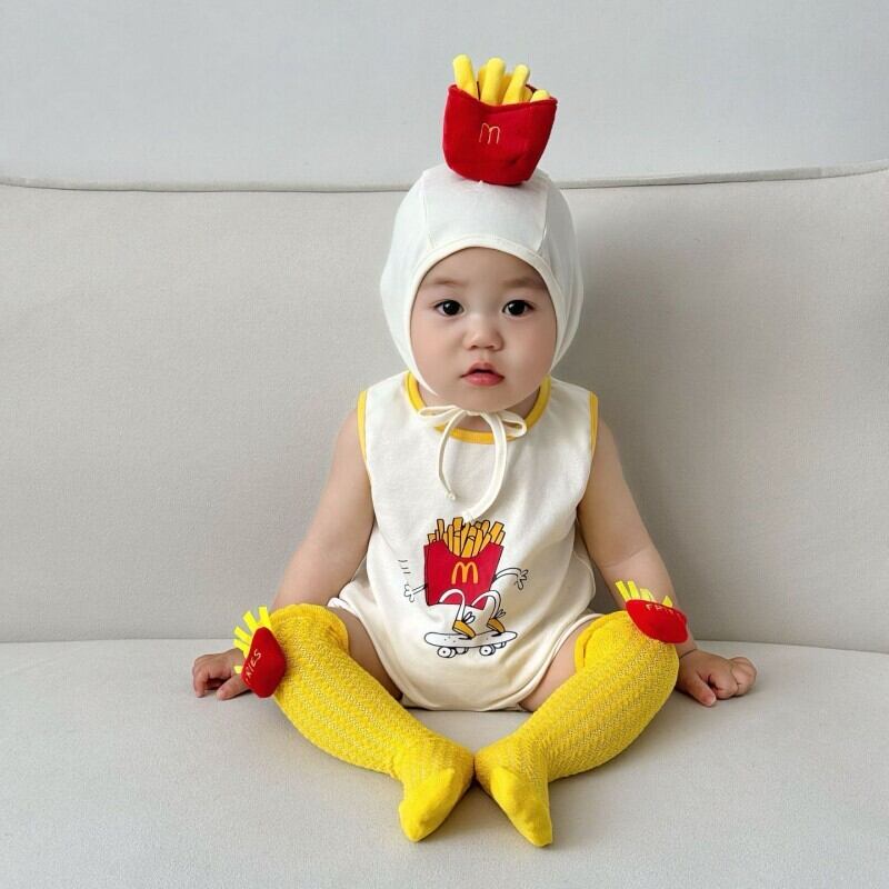 ベビー 夏新作 韓国風 赤ちゃん ポテトフライ型 ロンパース