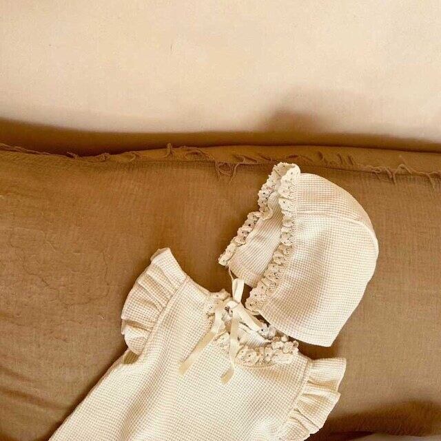 ベビー フリル袖 ロンバース ボンネット付き