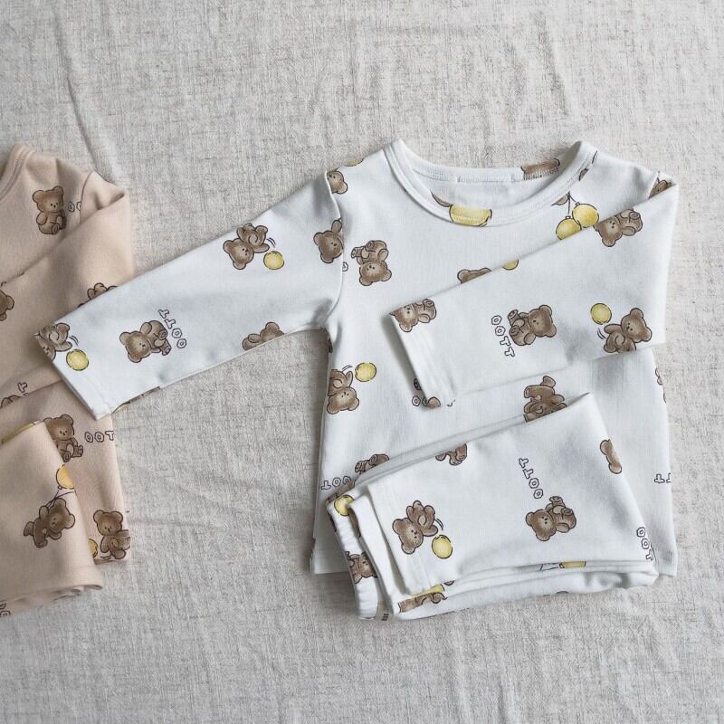 ベビー ベア柄 長袖Tシャツ&パンツ セットアップ