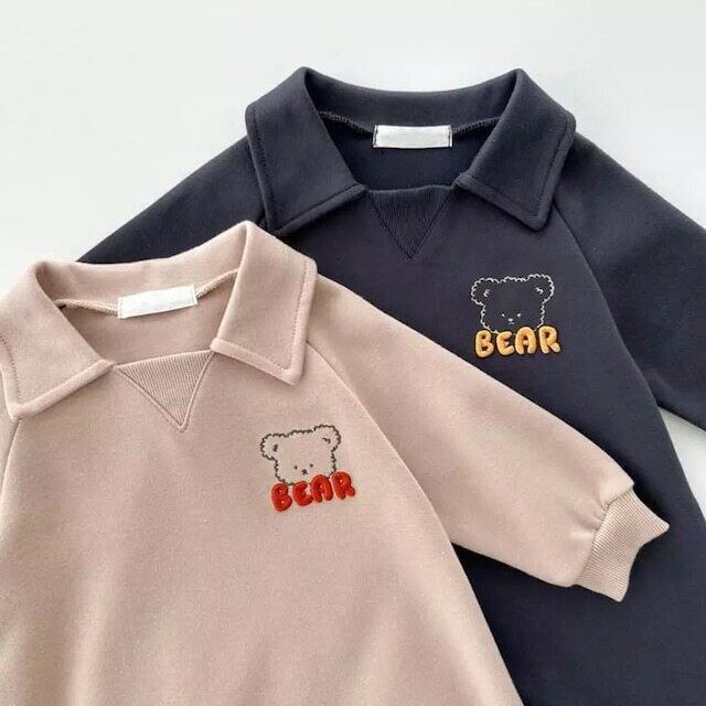 ベビー 秋新作 クマ ロゴ ポロカラー カバーオール