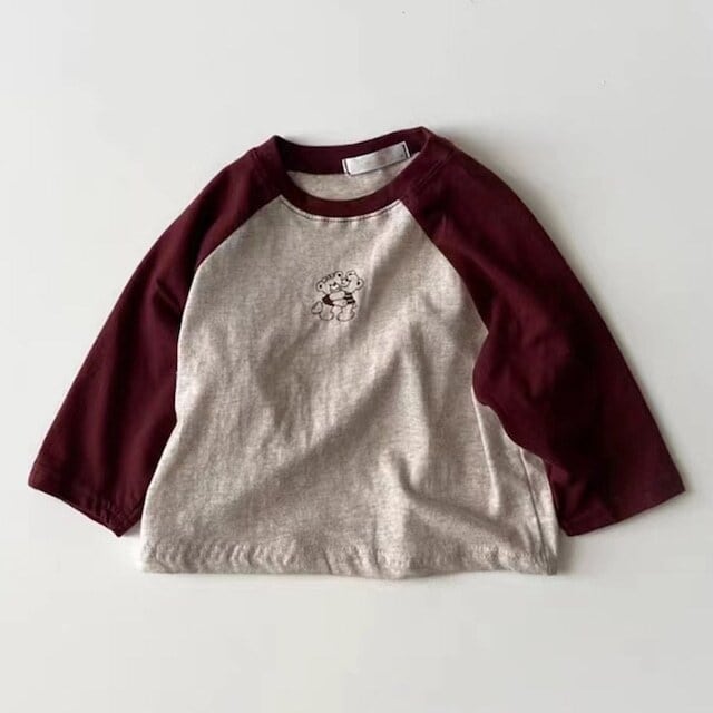 ベビー 秋新作 ヴァンテージ クマロゴ スプライシング Tシャツ