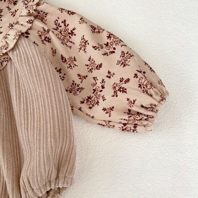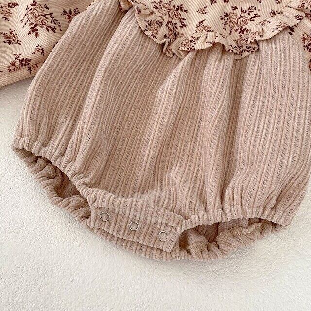 ベビー 秋新作 コーデュロイ 花柄 スプライシング ロンパース