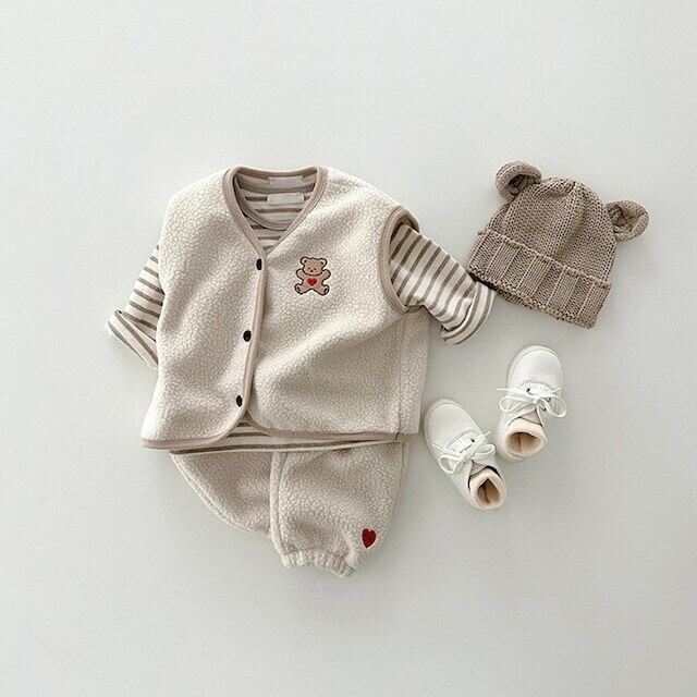 ベビー 冬新作 クマロゴ ポーラーフリース セットアップ