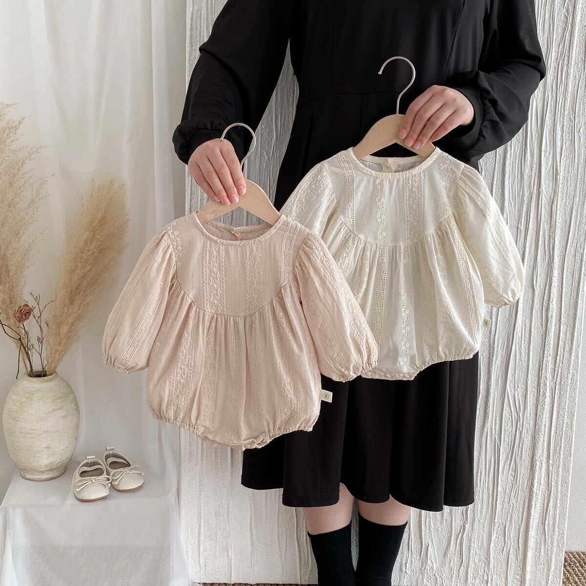 ベビー 秋新作 花刺繡 ロンパース 2色
