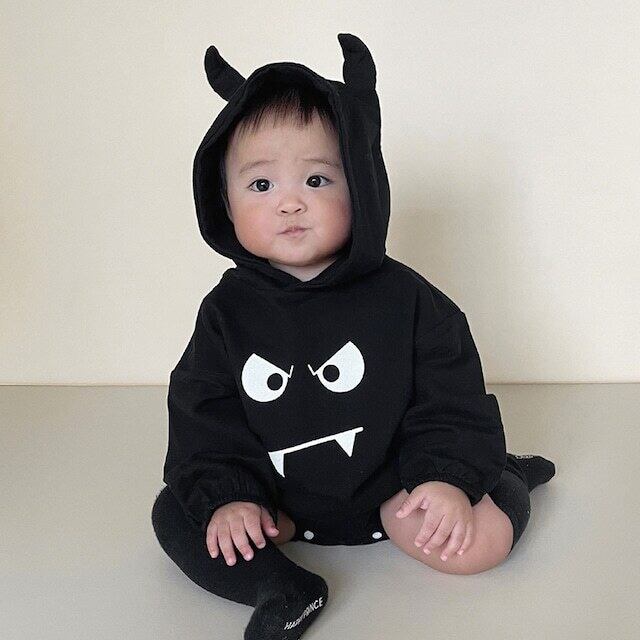 ベビー ハロウィーン INS映え 小悪魔風 フード付き ロンパース