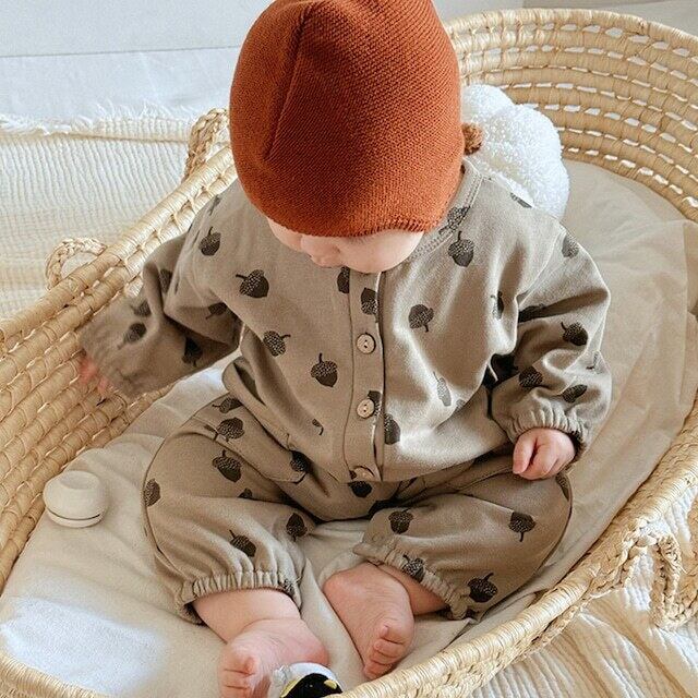 ベビー 新作 綿製 ナッツORドット柄 カバーオール