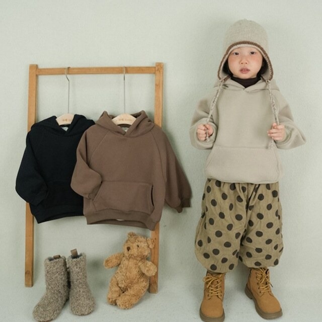 ベビー&キッズ 冬新作 純色 起毛ポケット付き パーカー 全3色